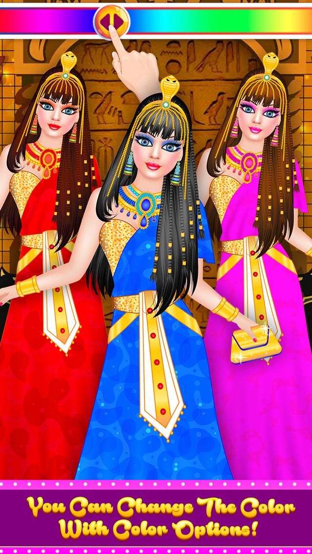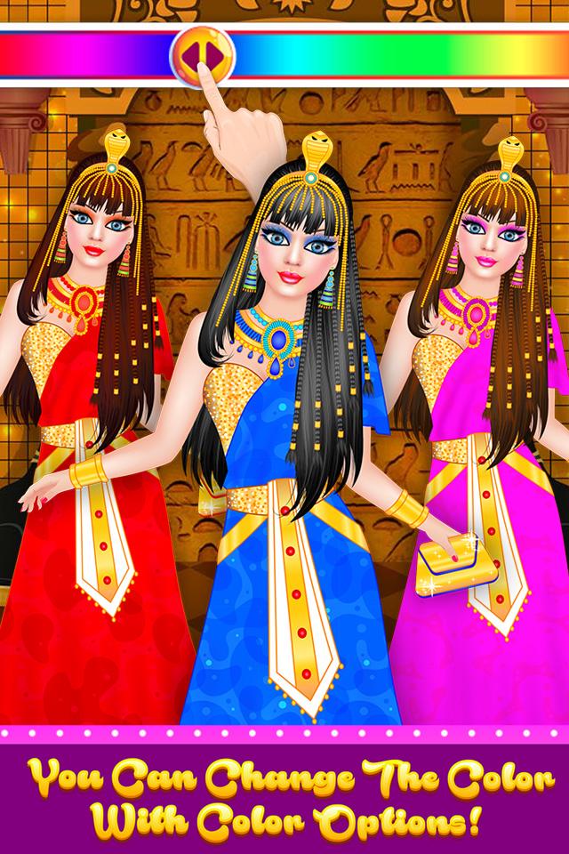 - scegli un vestito per la tua bambola egiziana tra un sacco di opzioni; puoi anche cambiare il colore del vestito facendo scorrere l'opzione del colore indicata