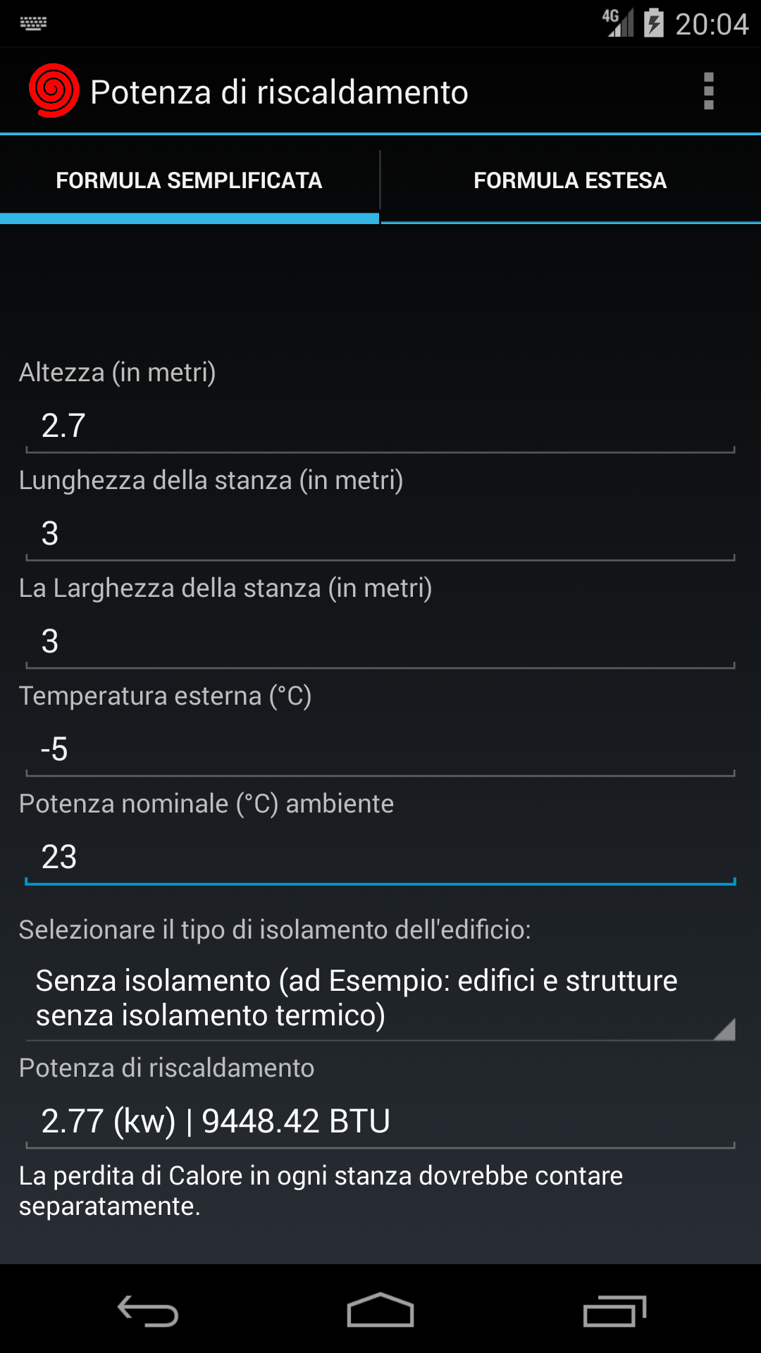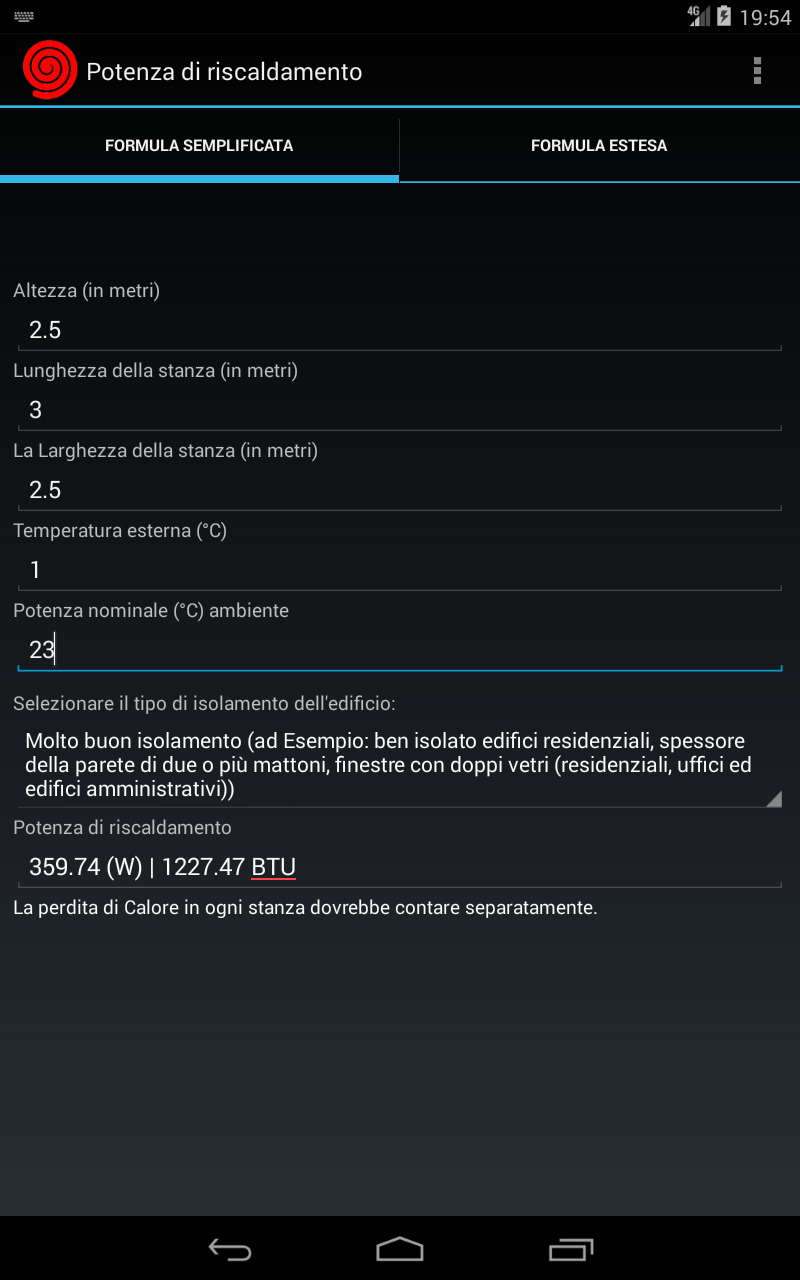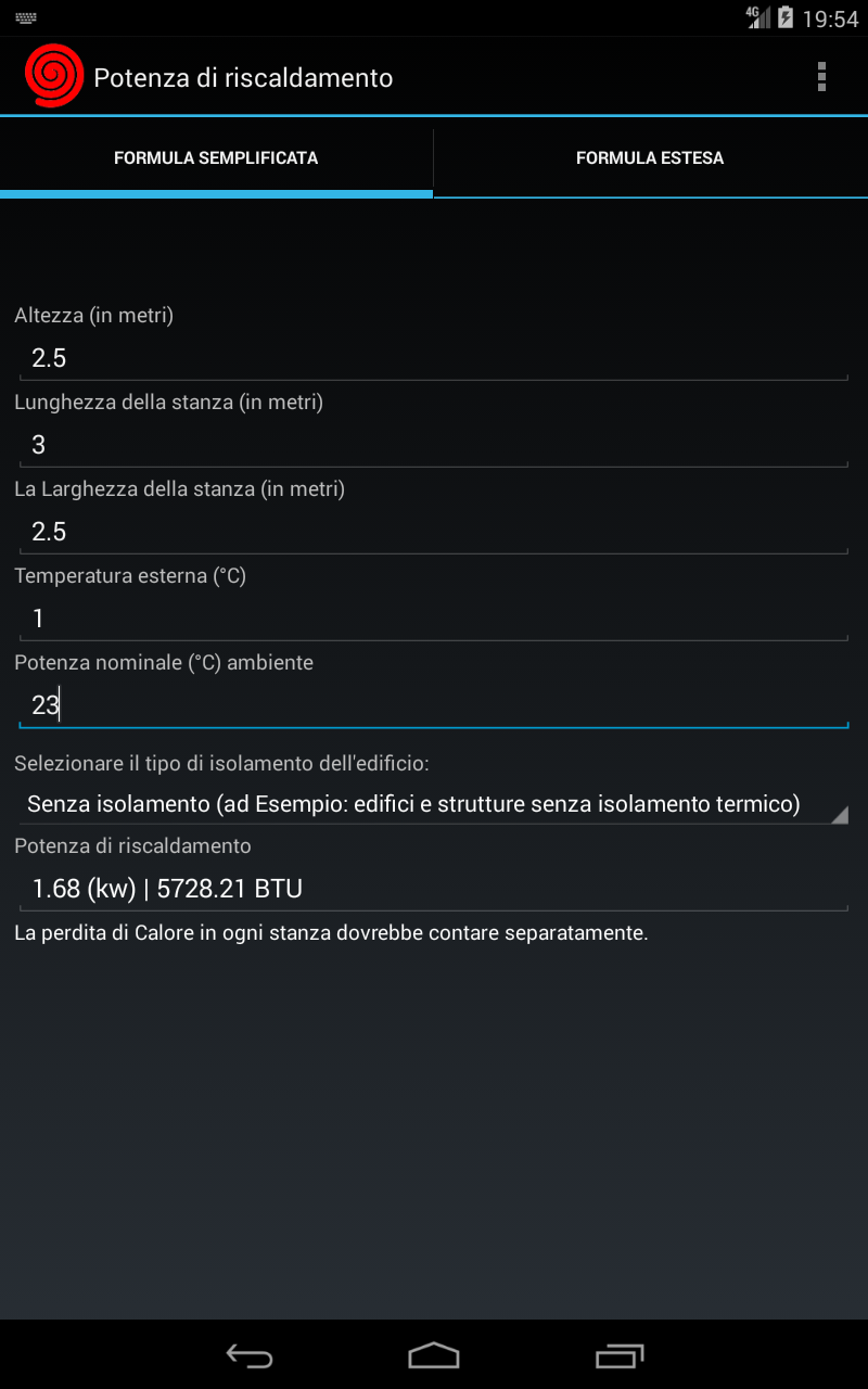 Calcolo del riscaldatore