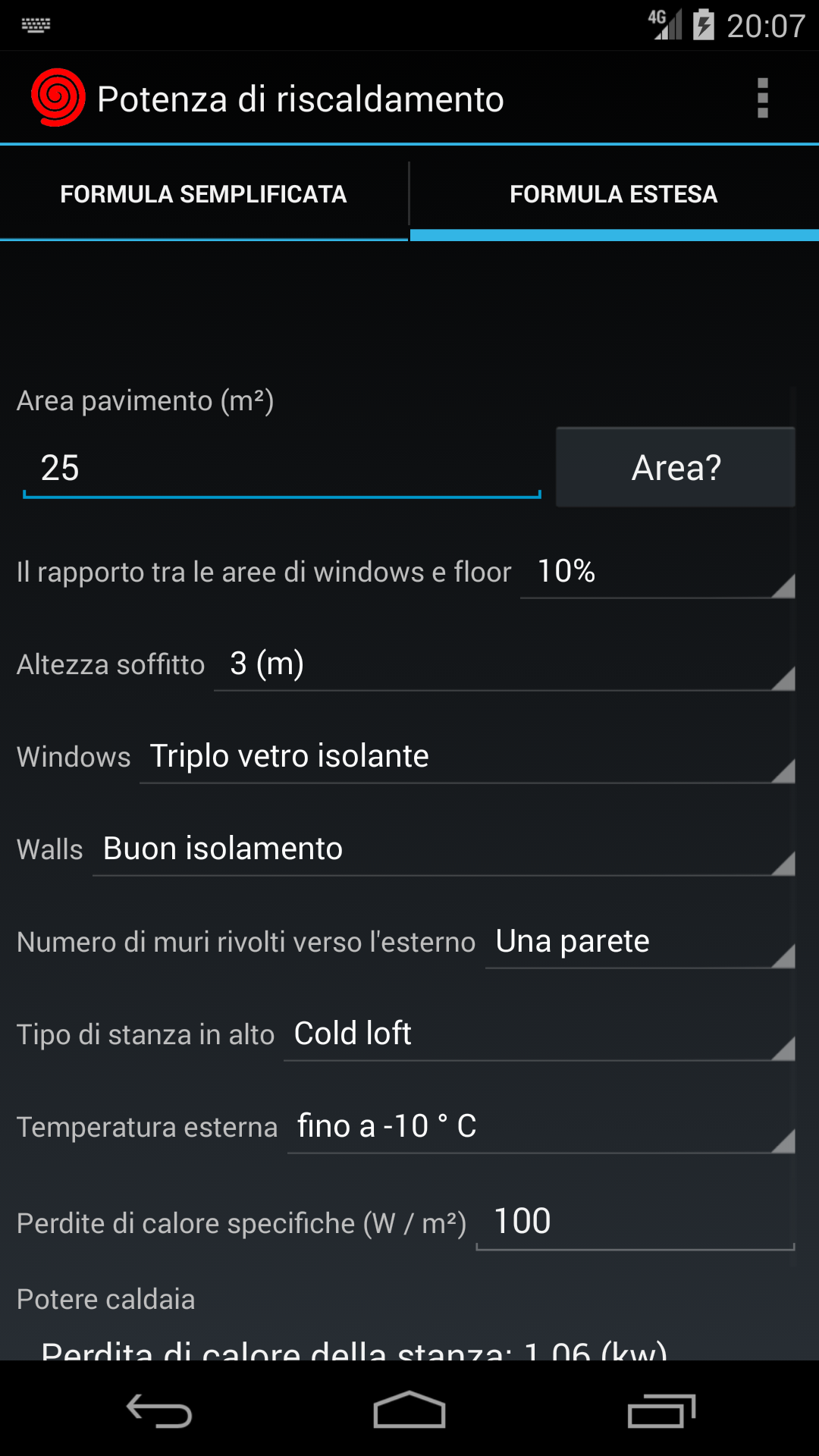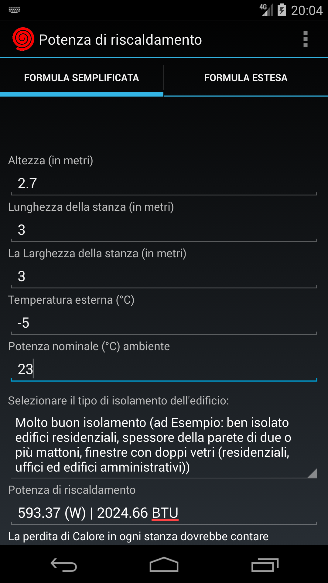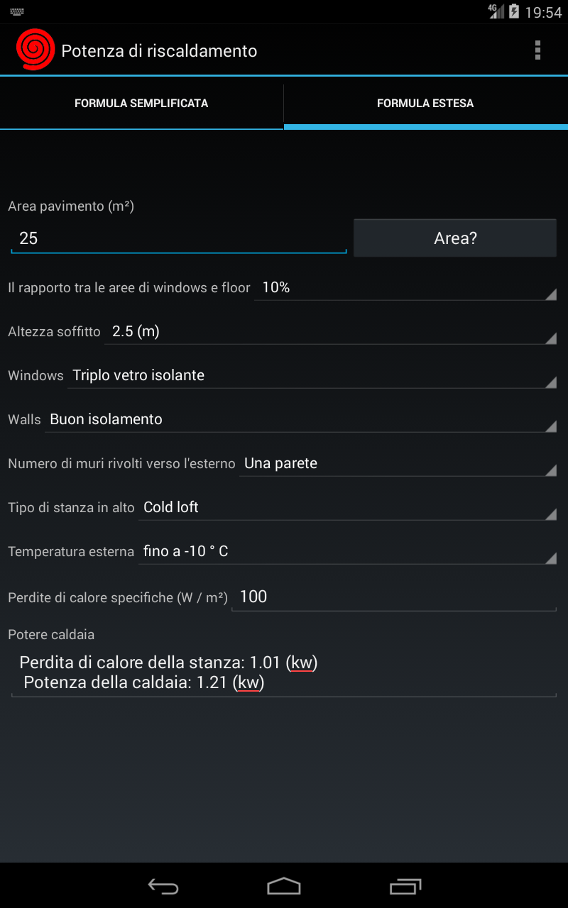 Calcolo del riscaldatore