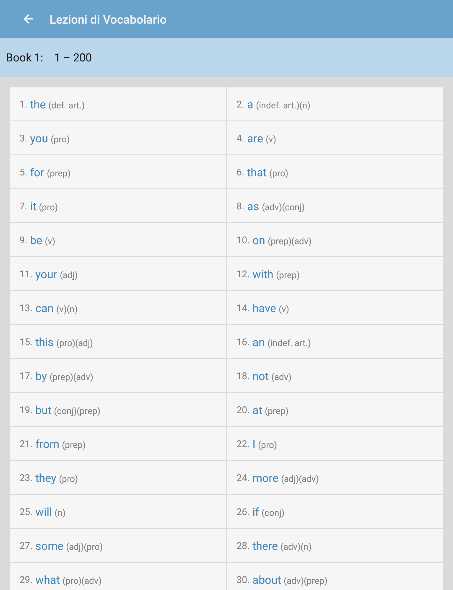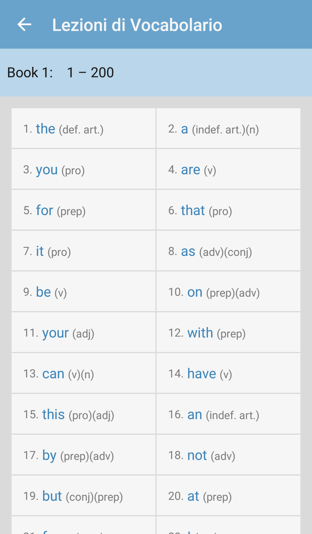 Impara il Vocabolario Inglese