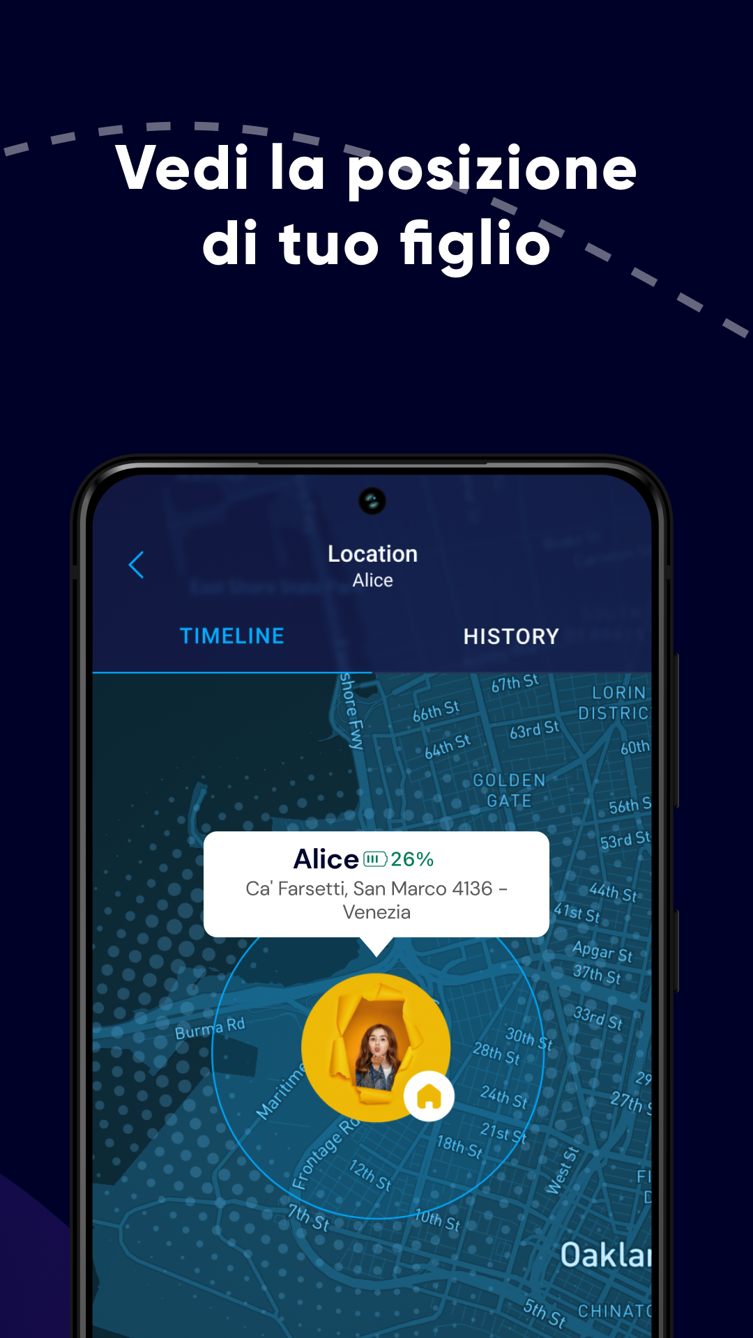 - Impostare zone sicure, come casa e scuola, e aree riservate.