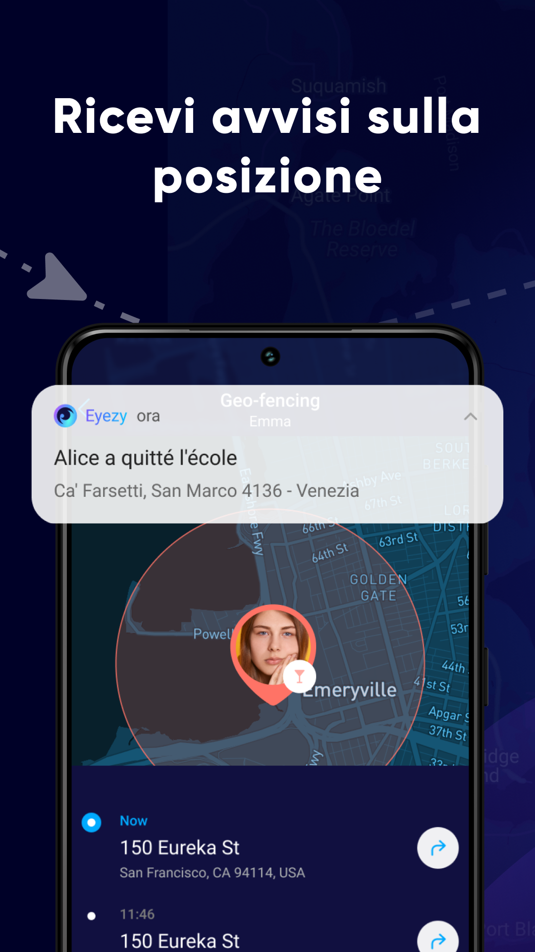 - I genitori ricevono una notifica immediata della posizione del bambino.