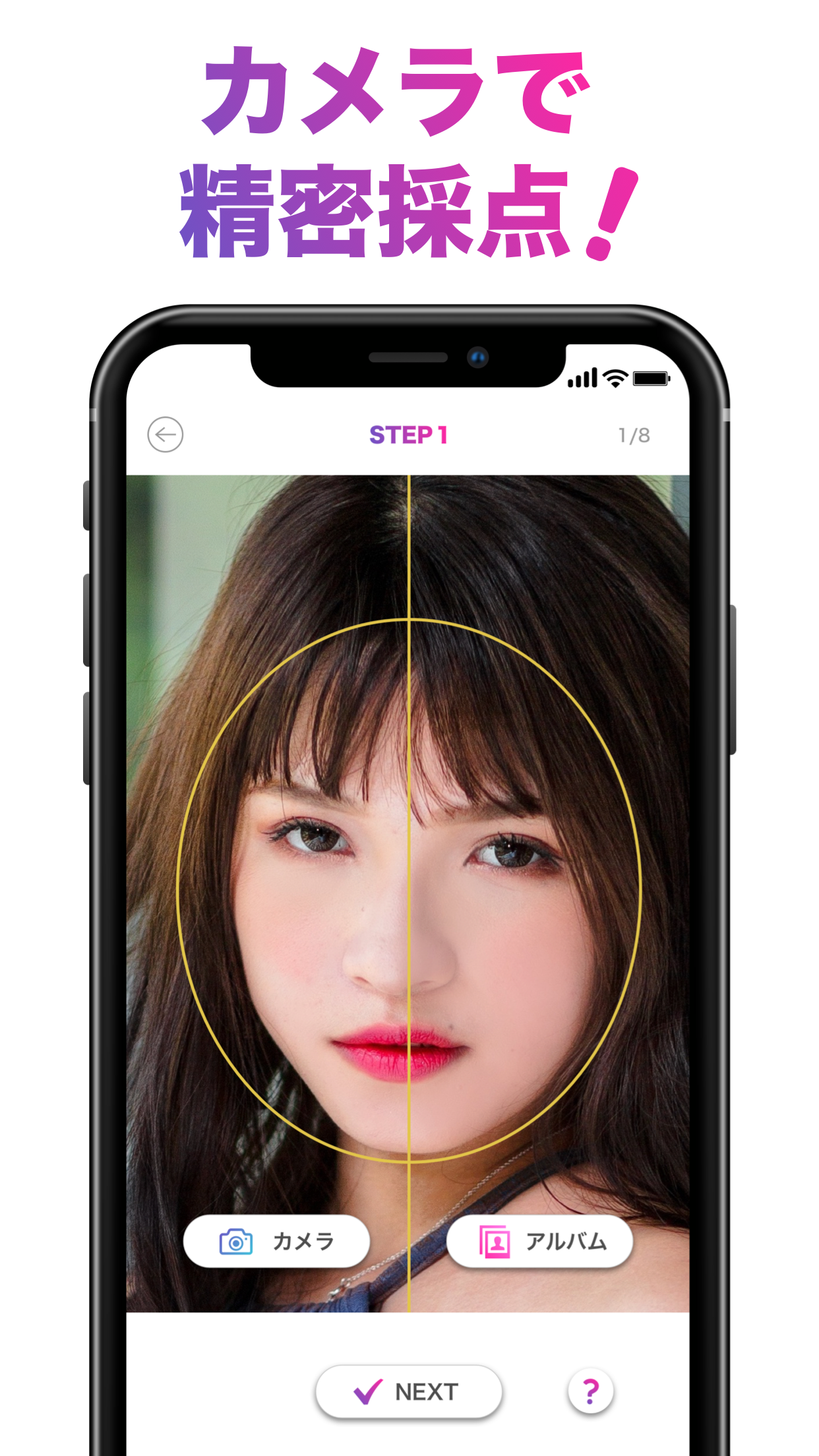 Puoi scoprire le dimensioni, la distorsione, la forma, l'equilibrio, l'età, ecc. del tuo viso utilizzando i punteggi.