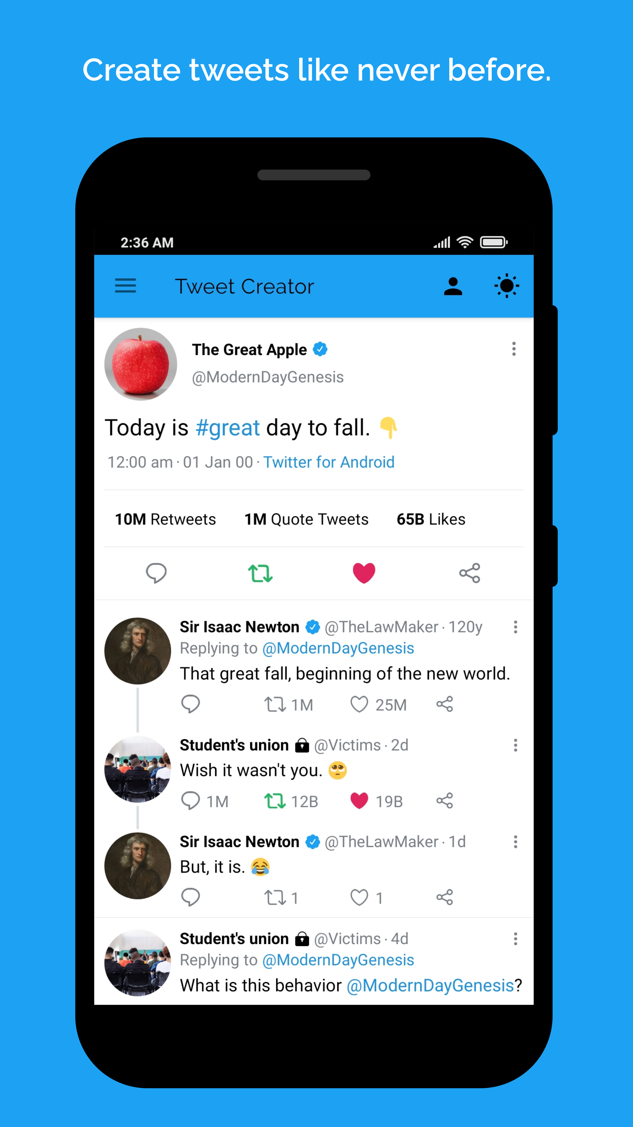 Fake tweet creator