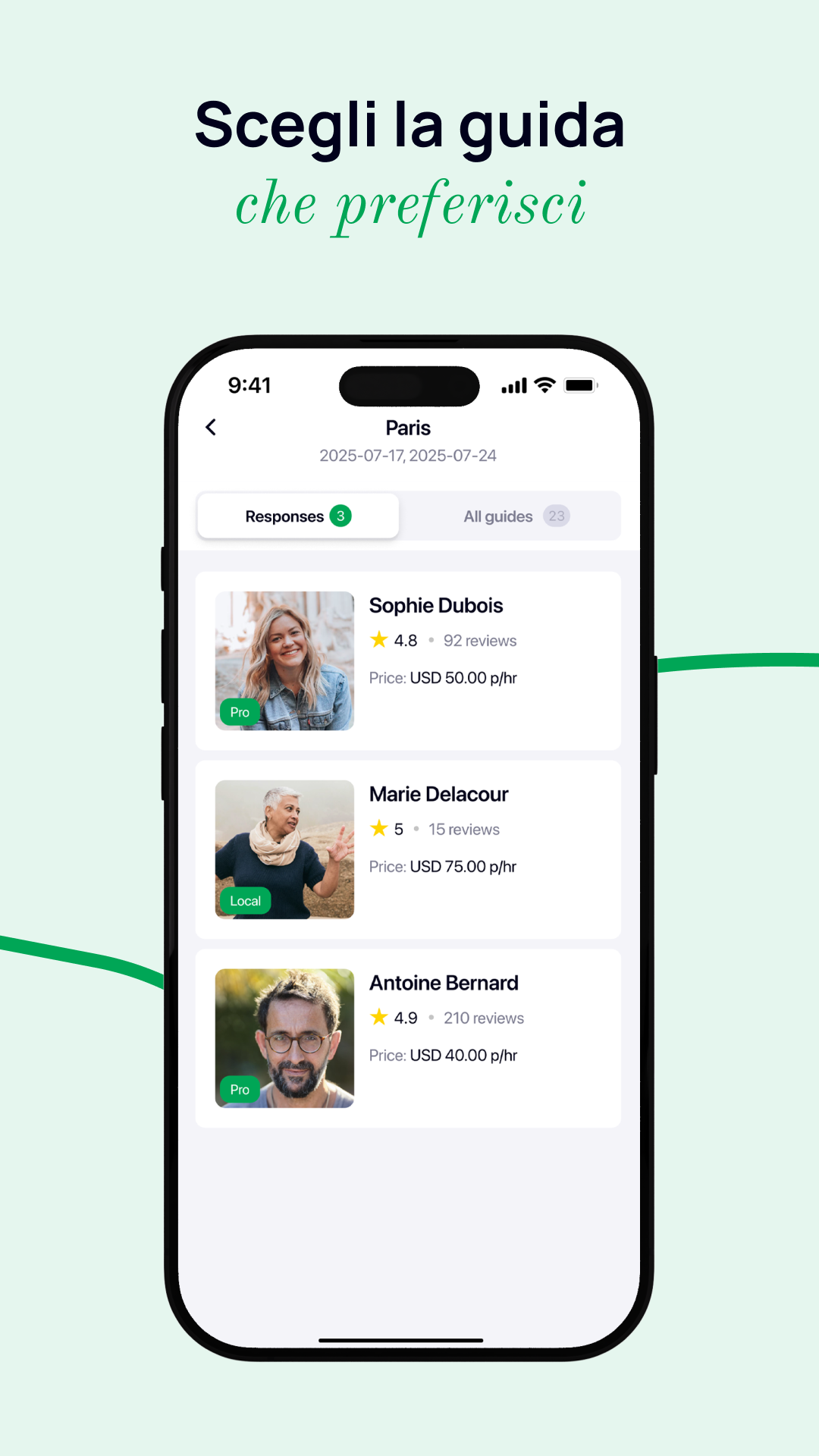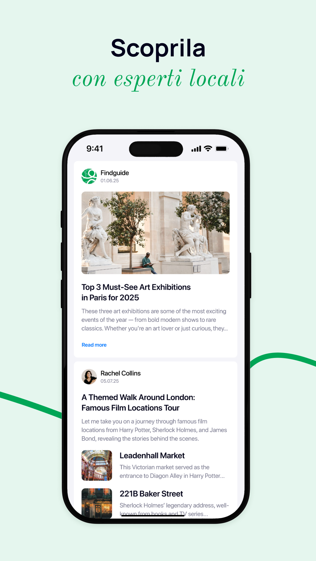 Crea e gestisci prenotazioni per guide locali private. Esplora e prenota guide con facilità e sicurezza — ogni guida verifica la propria identità con documenti ufficiali al momento della creazione del profilo.