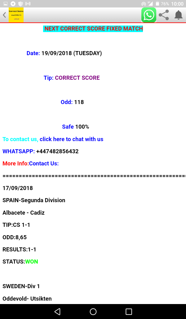 FIXED CORRECT SCORE