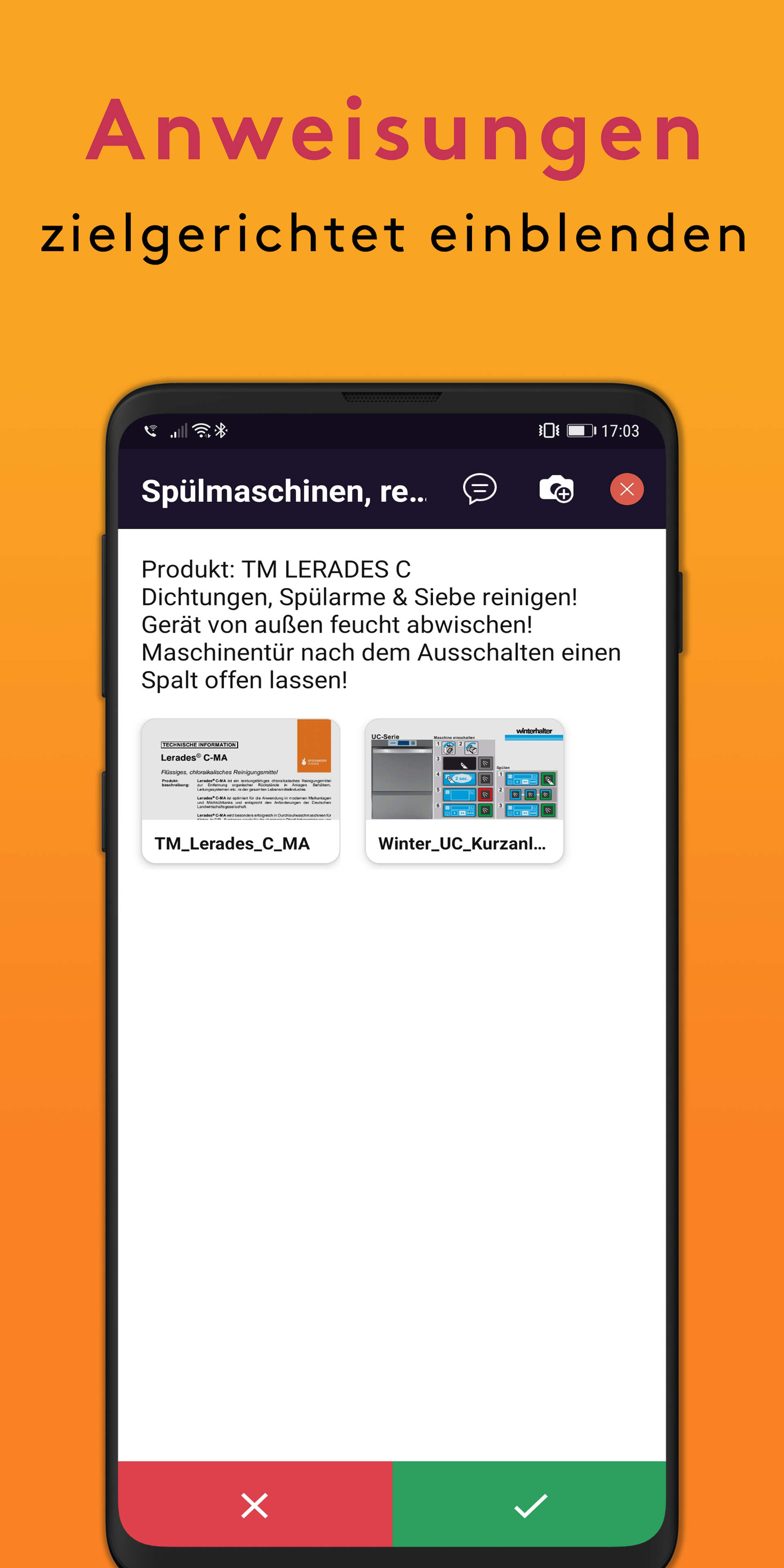 Dipendenti non qualificati: con l'aiuto di foto, video e PDF, possono svolgere autonomamente altre attività per loro. In caso di deviazioni dalle specifiche, è possibile inviare notifiche automatiche a terzi. Il flusso di informazioni è ridotto da spesso diversi giorni o settimane a pochi secondi!