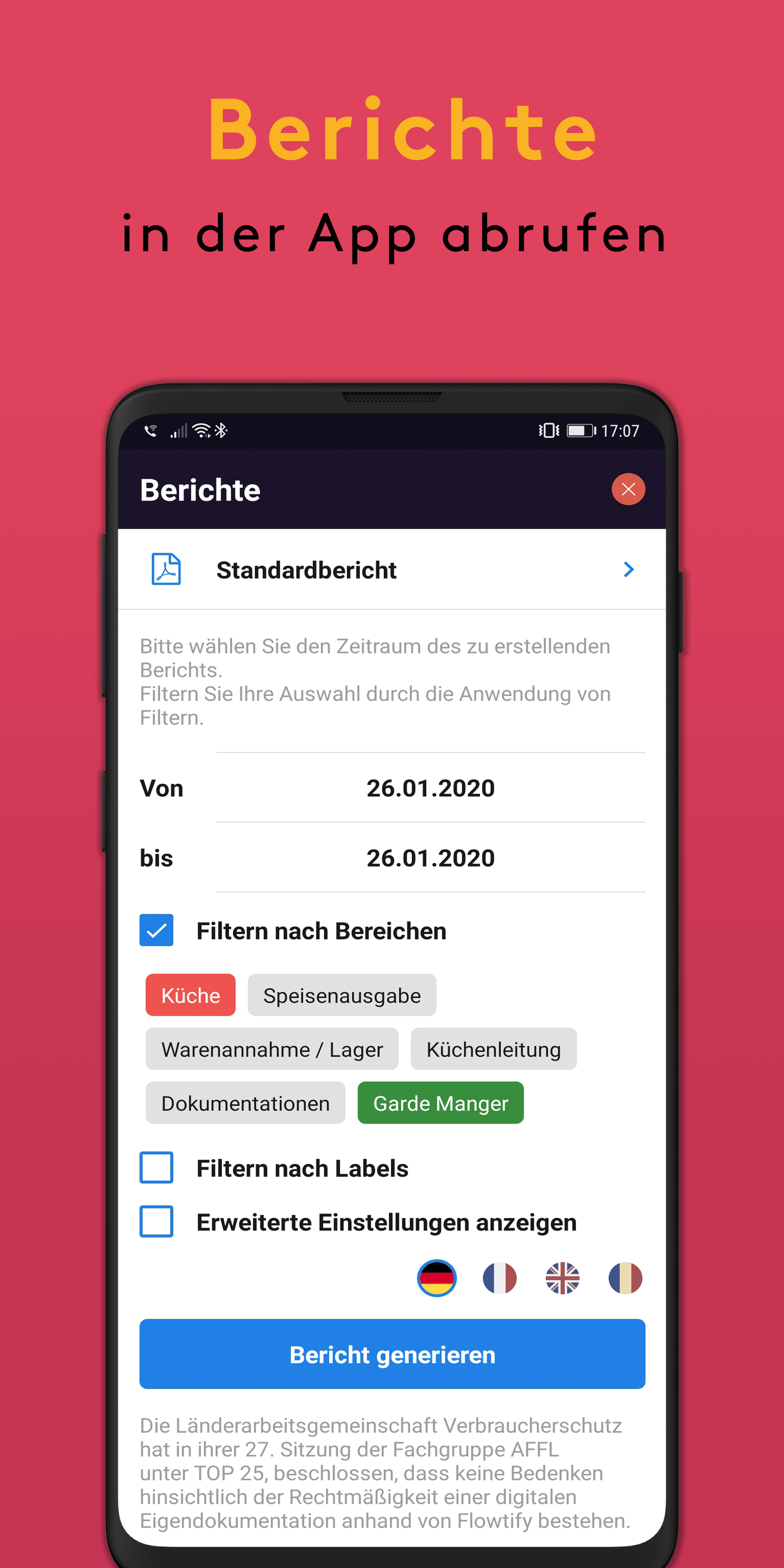 Da maggio 2016, FLOWTIFY è stato riconosciuto a livello nazionale nell'area della documentazione dell'HACCP dal "Gruppo di lavoro federale sulla protezione dei consumatori" dei ministeri della protezione dei consumatori.