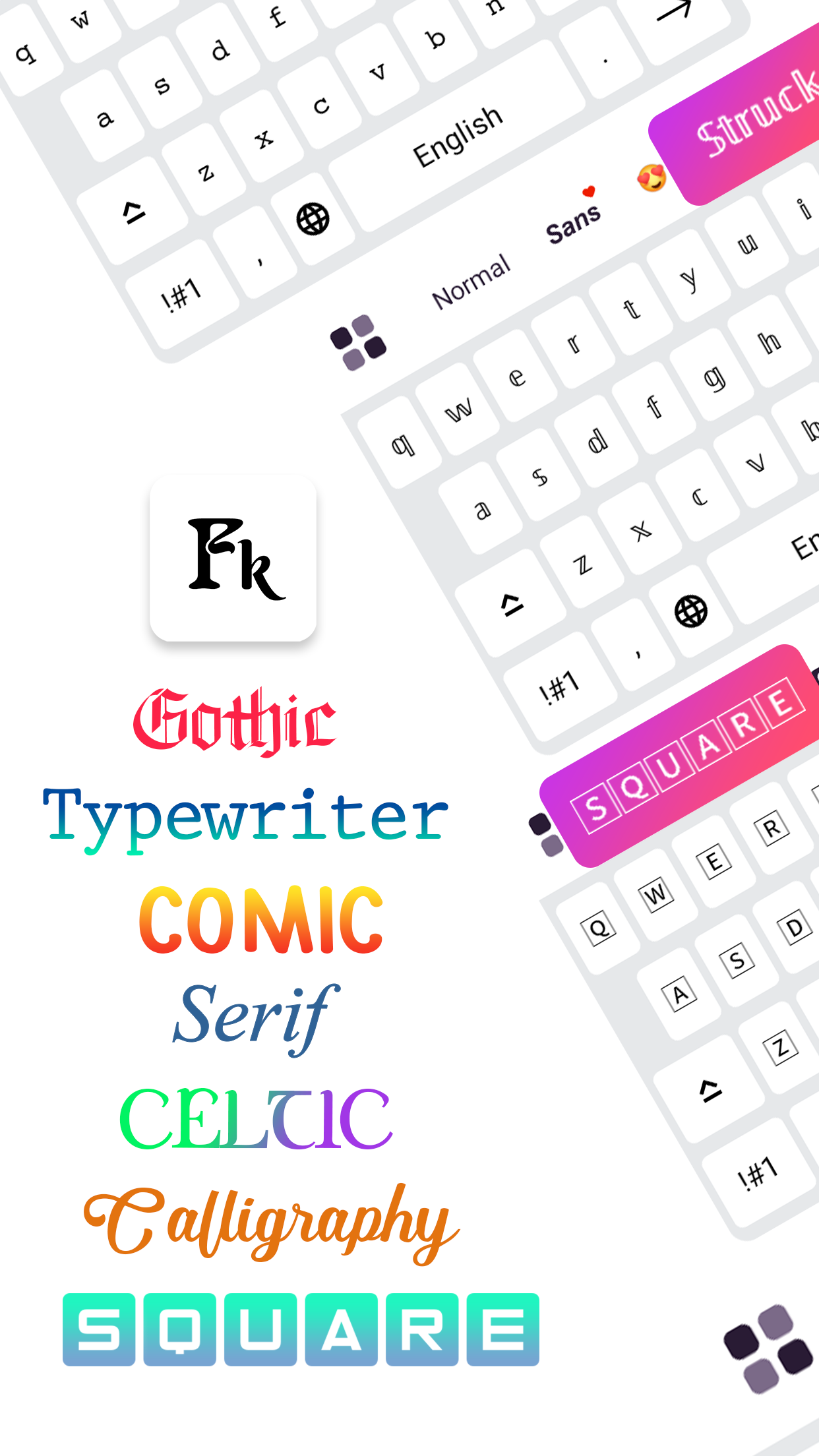 Accedi a un'ampia raccolta di caratteri eleganti e interessanti che soddisfano ogni stato d'animo e occasione. Che tu ti senta stravagante, professionale o giocoso, "Fonts Keyboard" ha il carattere perfetto da abbinare.