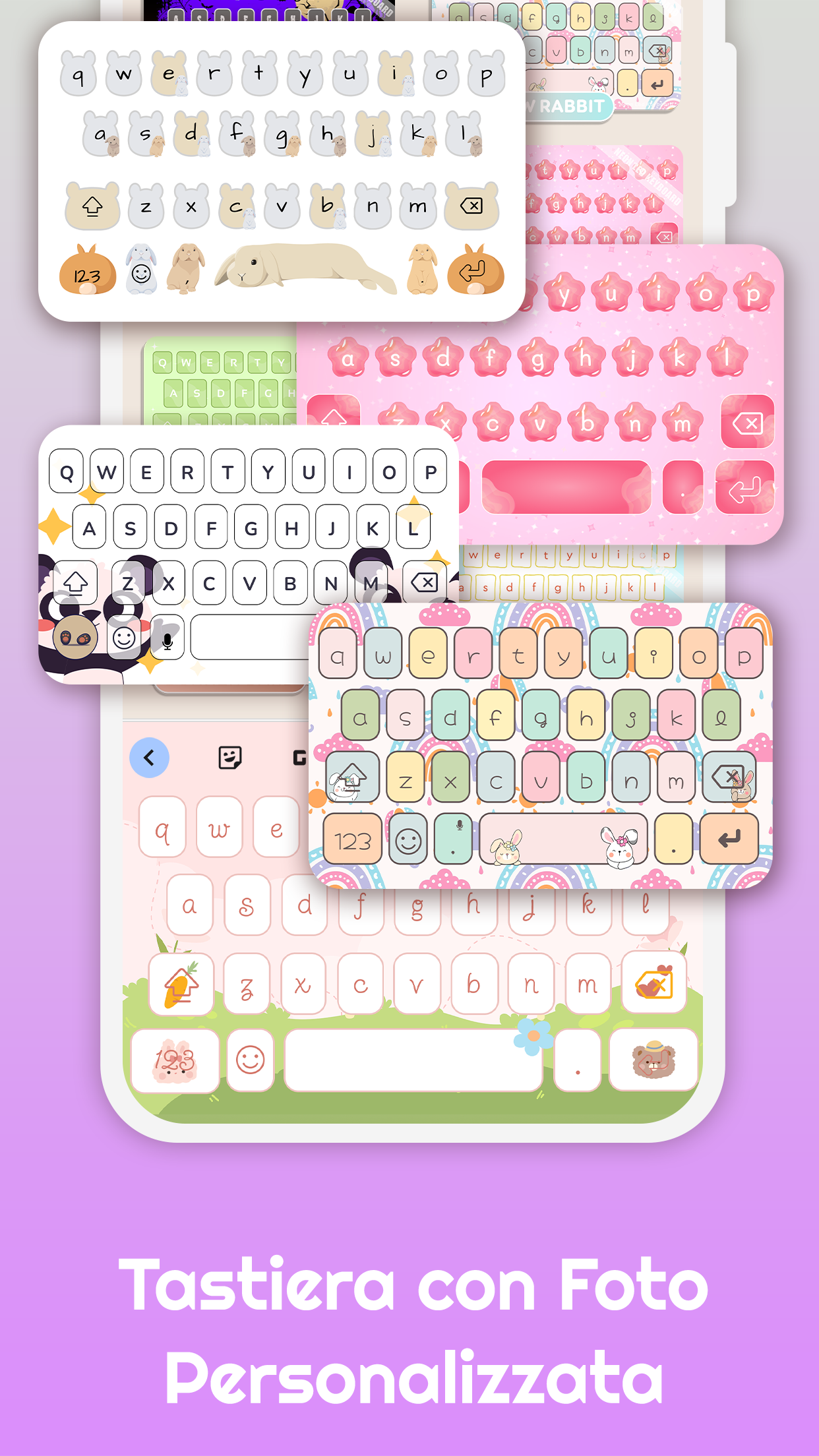 - Oltre 1000 temi eleganti GRATUITI come Anime, tastiera Neon, tastiera LED, tastiera RGB, simpatici animali🙈, Unicorno 🦄, Cielo 🌤️, Arcobaleno 🌈, Effetti glitter ✨, Modalità scura 🌚, Acquarello ️🎨, Tastiera informatica ⚡, Fiore 🌸, Vacanze (temi natalizi ⛄, temi Capodanno 🏮, temi Halloween 🕸️…) e temi animati.