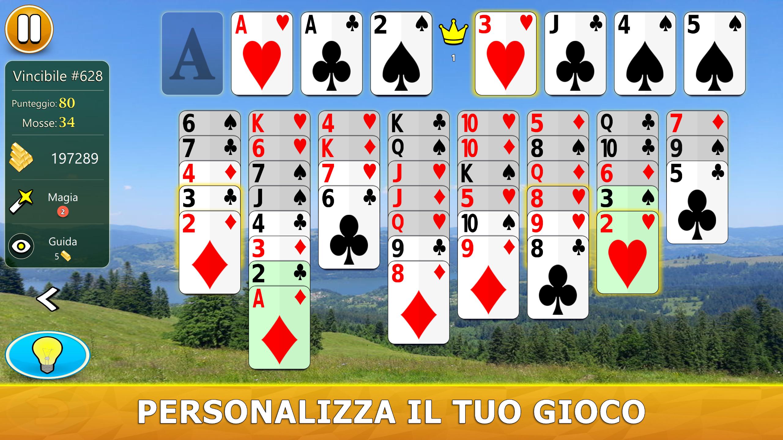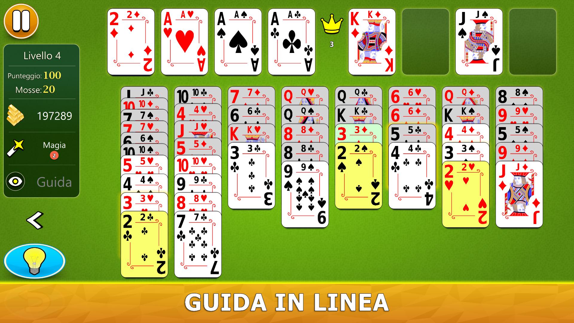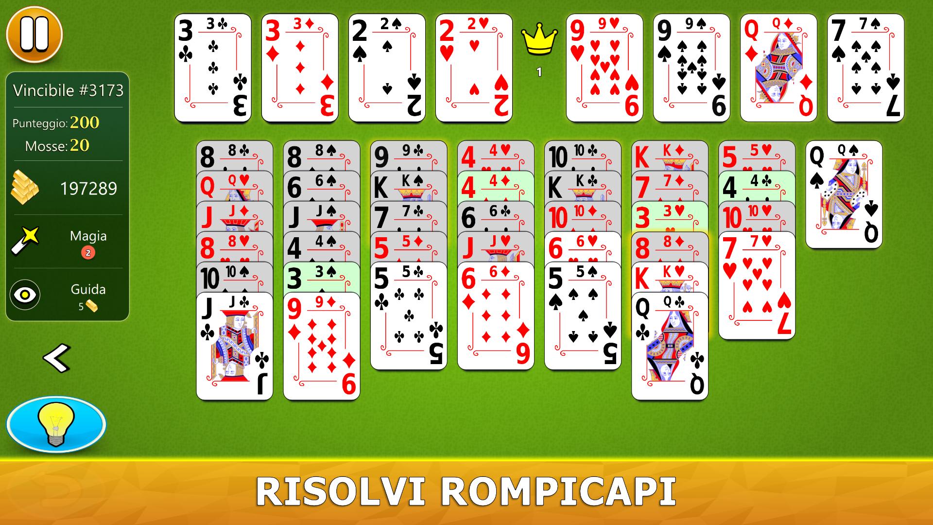 Il gioco ha un sistema di aiuto visivo intelligente. Ti darà suggerimenti utili in modo intuitivo. Se non hai mai giocato a FreeCell Solitaire prima, il nostro sistema di aiuto ti consiglierà, passo dopo passo, le mosse migliori da fare.