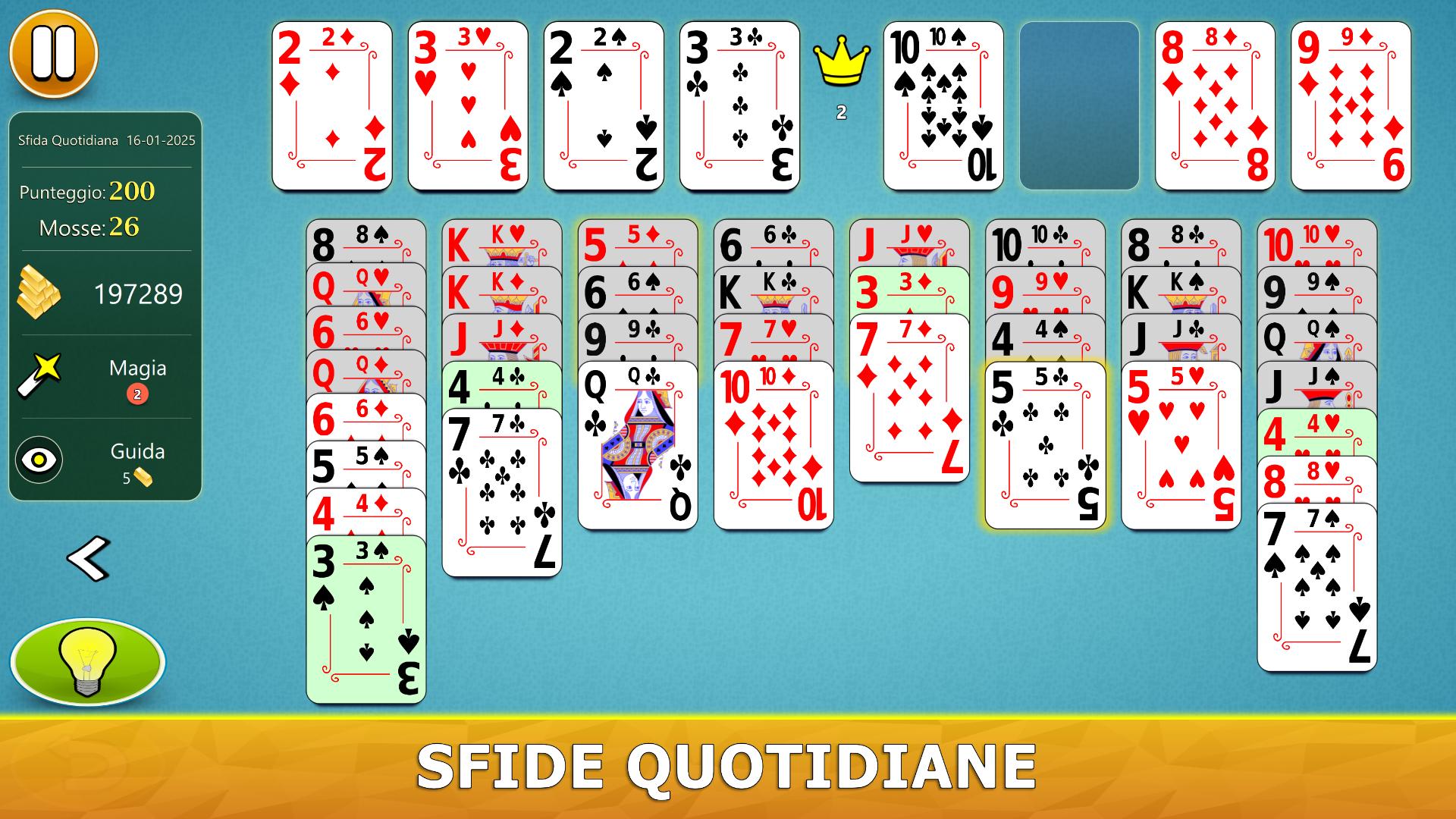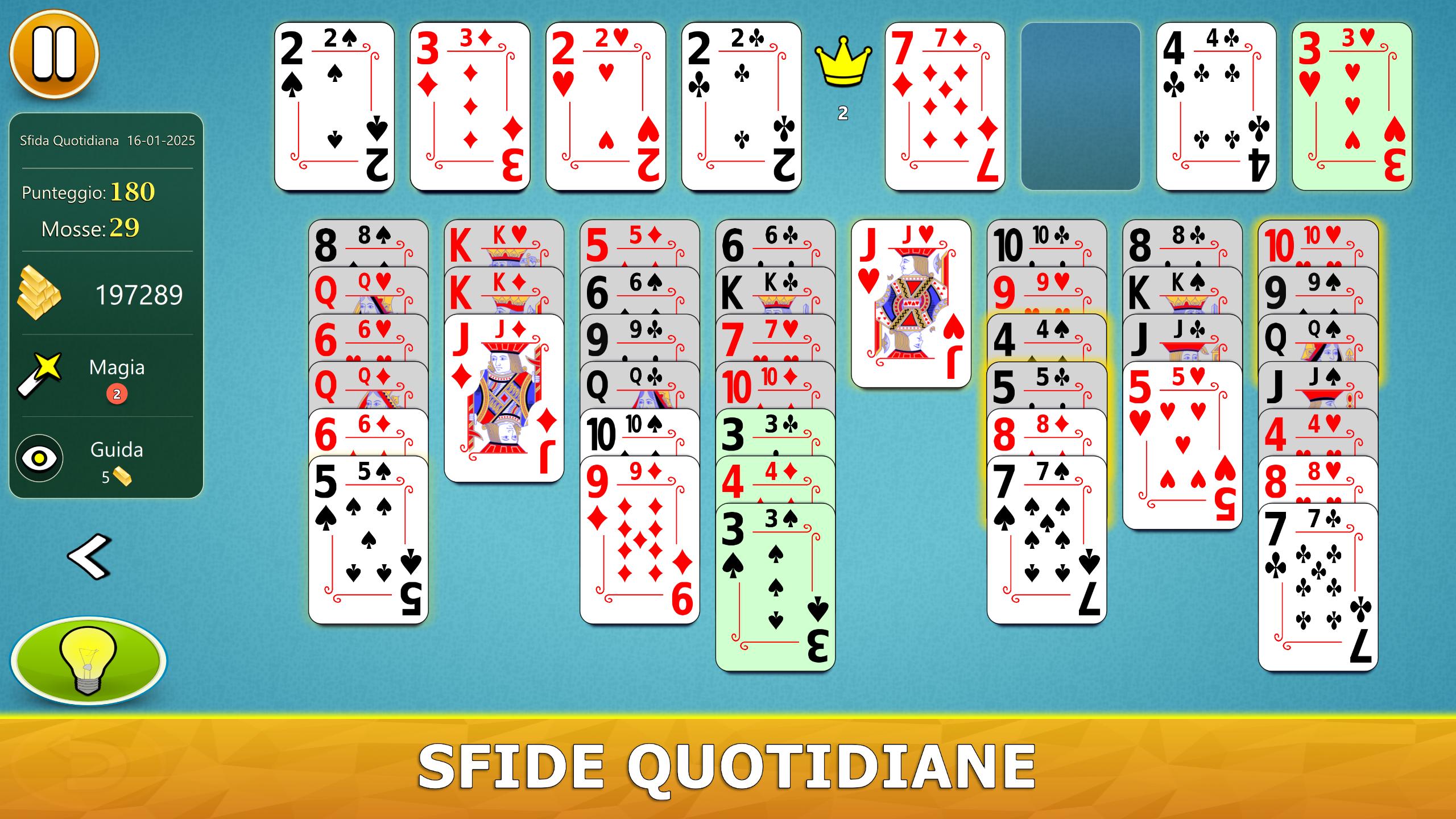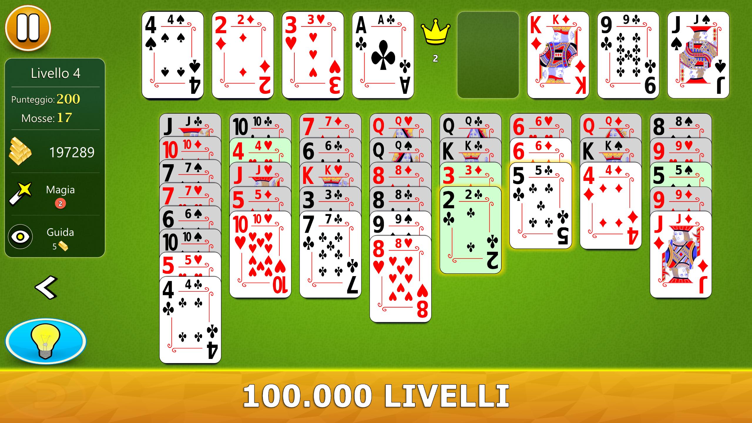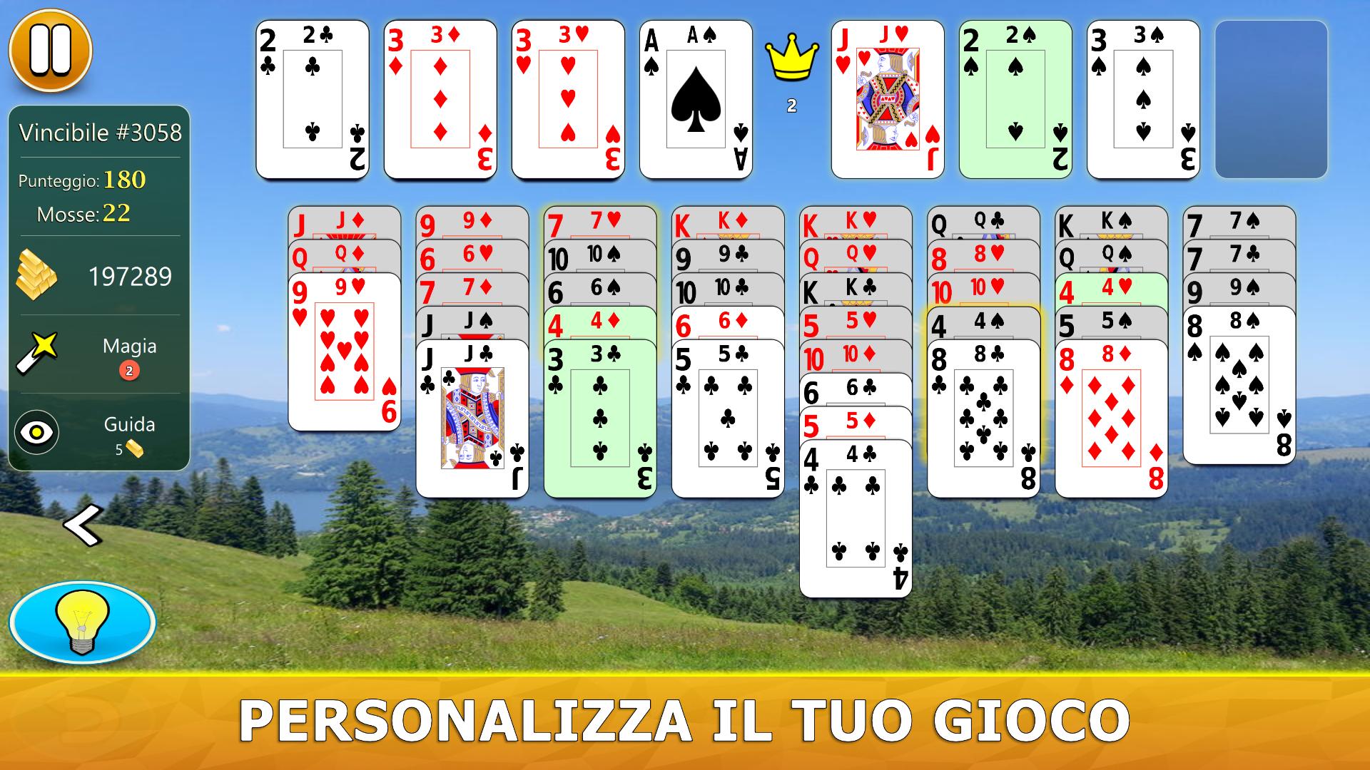 Il gioco ha un sistema di aiuto visivo intelligente. Ti darà suggerimenti utili in modo intuitivo. Se non hai mai giocato a FreeCell Solitaire prima, il nostro sistema di aiuto ti consiglierà, passo dopo passo, le mosse migliori da fare.
