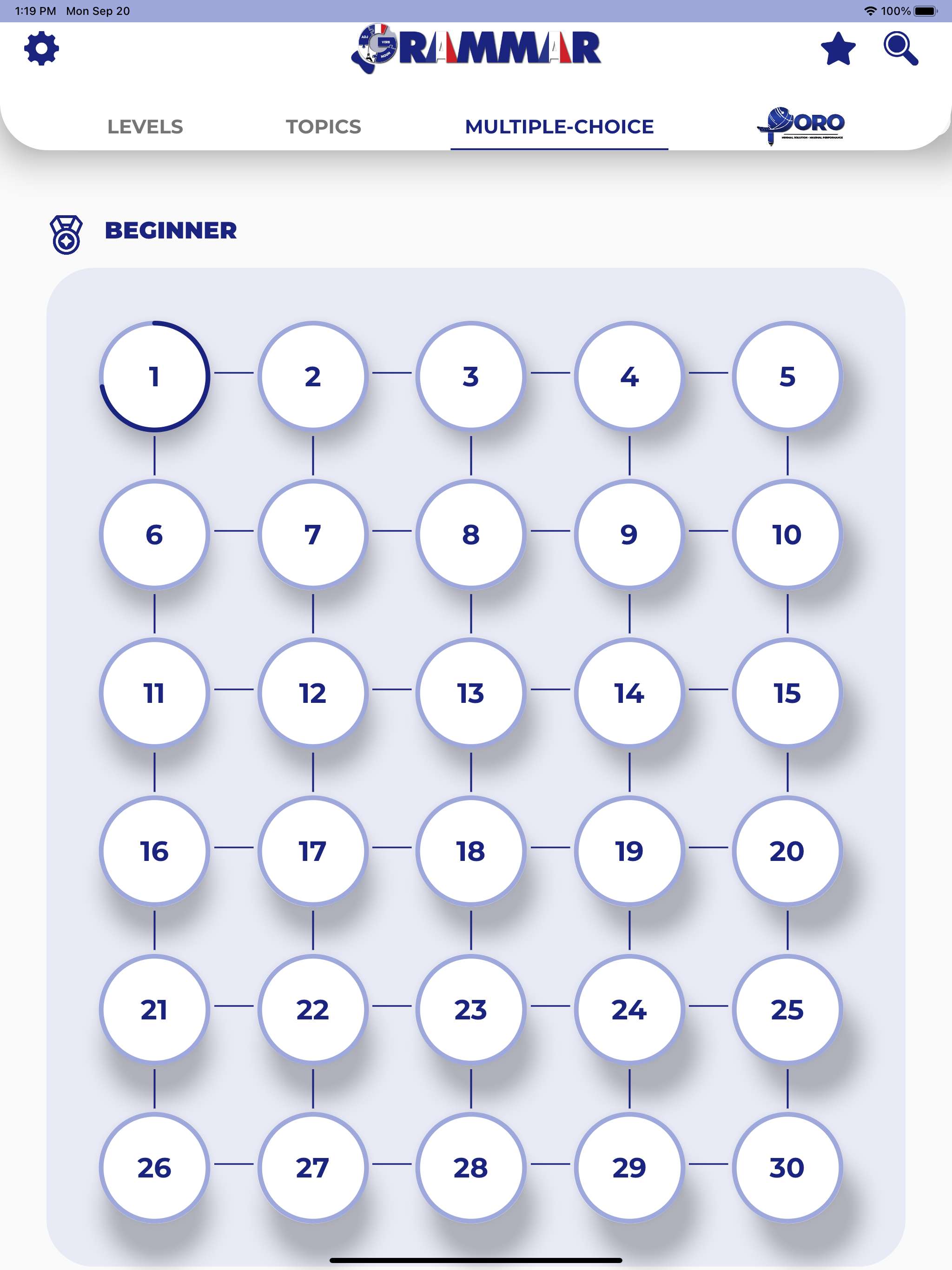 • Ogni livello ha più di 400 esercizi di grammatica, suddivisi in circa 20 esami e simulati come un esame reale.