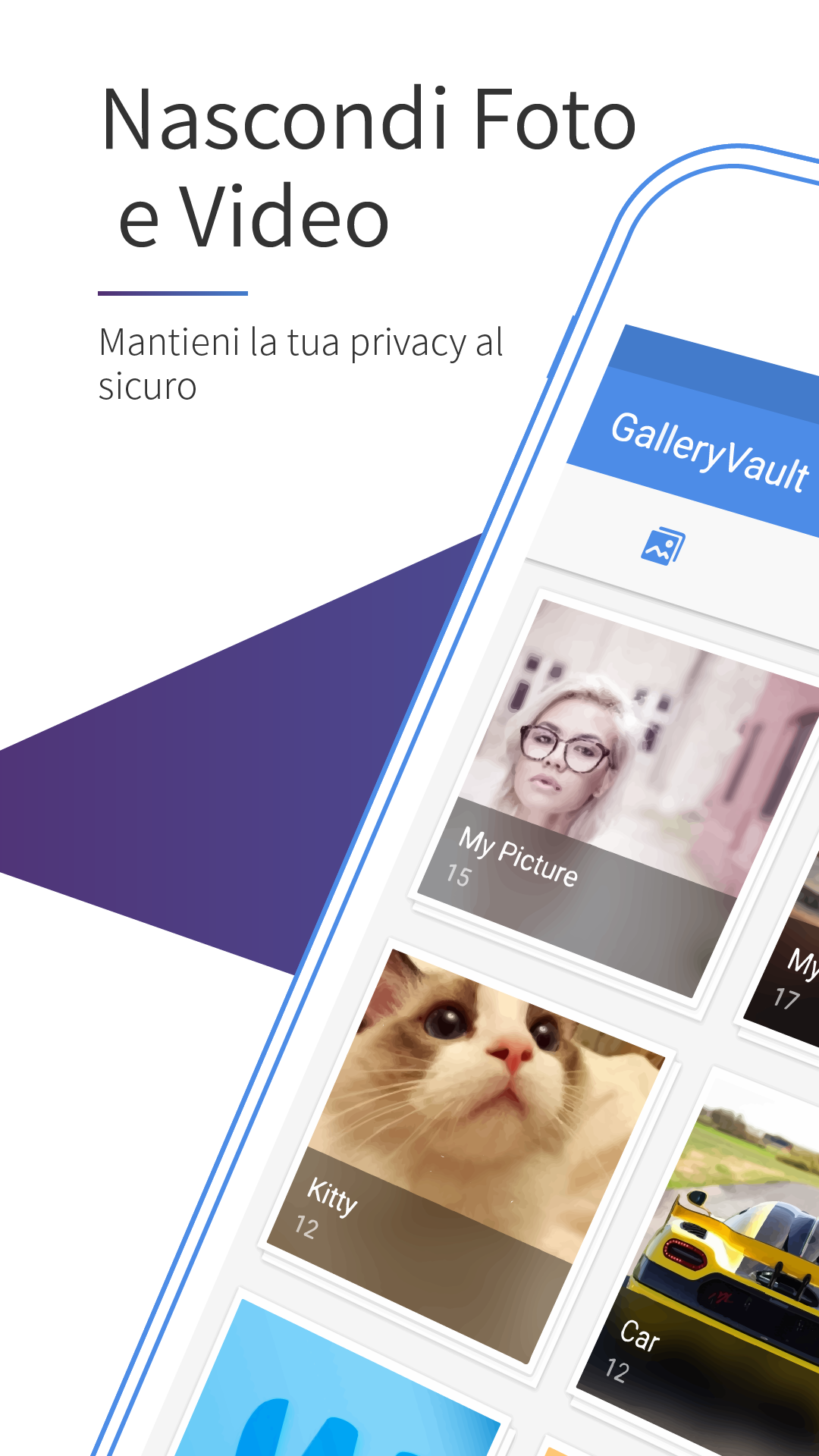 GalleryVault può nascondere l'icona dell'app e mantenere la tua privacy assolutamente al sicuro. Puoi importare le tue immagini e i tuoi video privati in questo deposito sicuro e nessuno ne conosce l'esistenza.