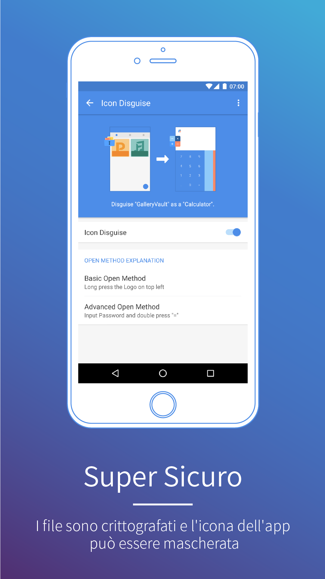 In evidenza caratteristiche:• Nascondi foto, nascondi video e nascondi qualsiasi altro tipo di file