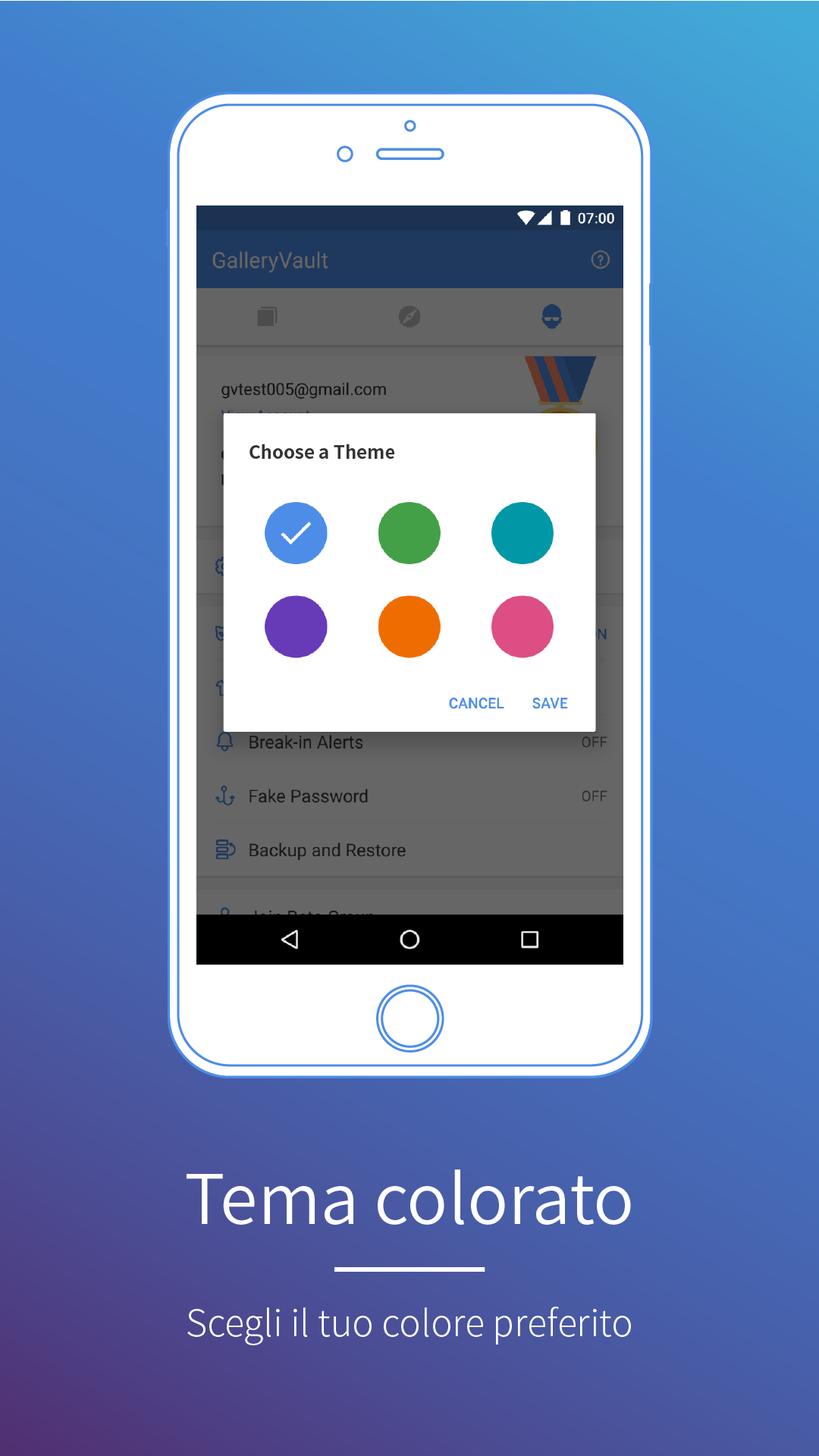 • Scuoti il telefono per chiudere rapidamente Gallery Vault