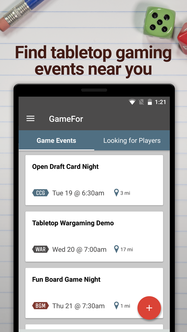 GameFor - Find Local Game Events and Players