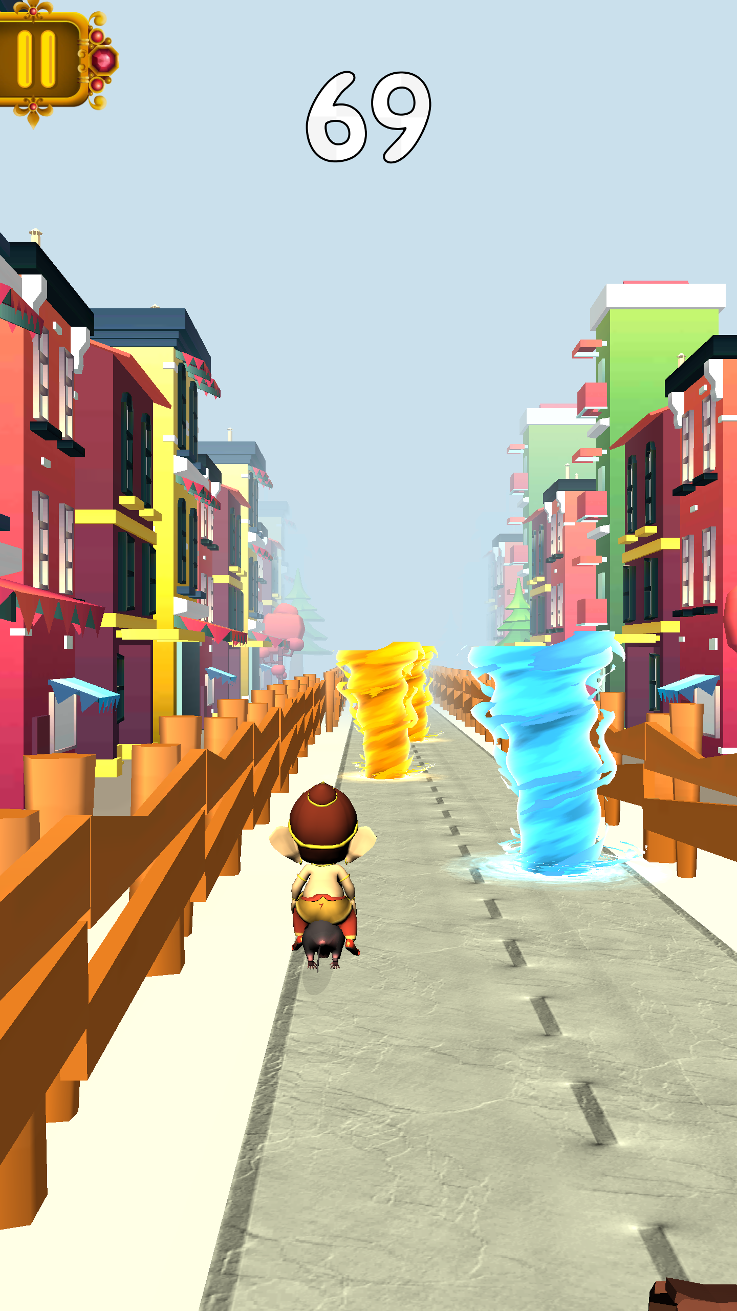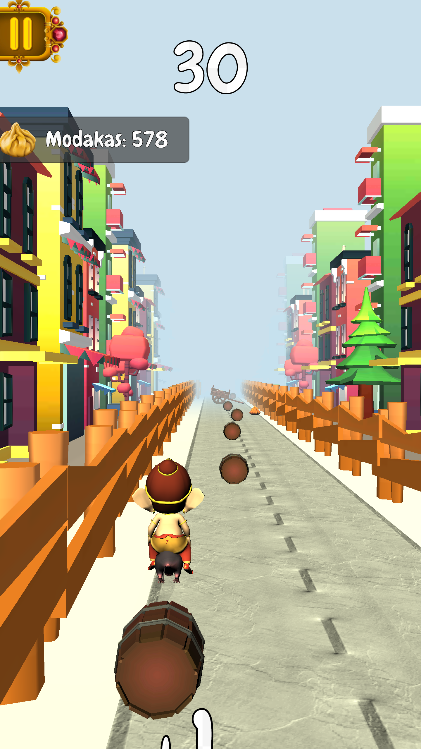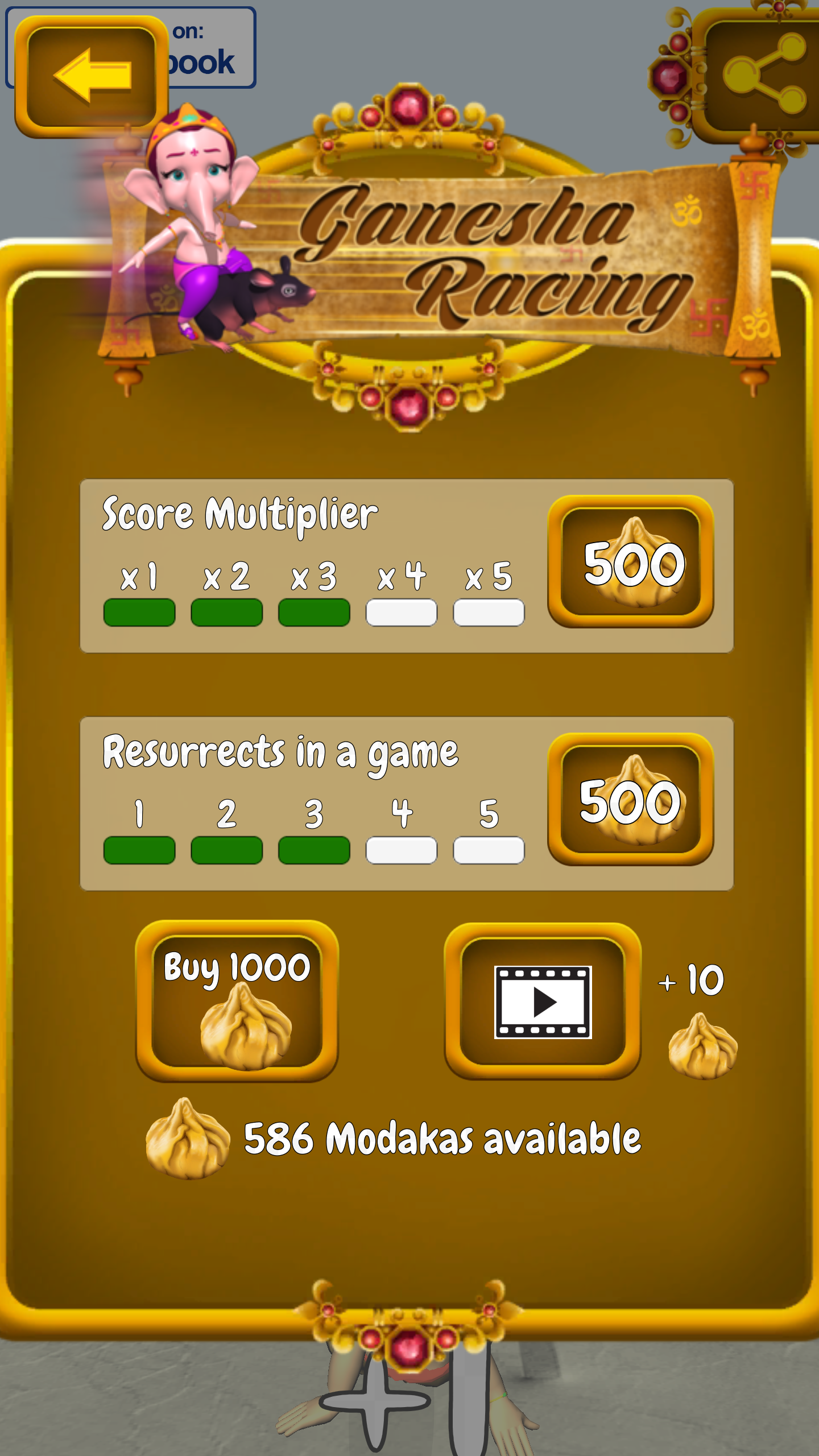 Ganesha Racing - Multiplayer Choose your Ganesha and challenge with other Ganeshas in online multiplayer games. Survive more than the opponent to win the race !! Choose from lots of Ganesha models (More comming soon). And also update on the way which will allow to invite and play with facebook friends. Enjoy Ganesh Racing this Ganesh Chaturthi festival by playing with your friends. Features of Ganesha Racing * Multiple Ganeshas to choose from. * Single Player game with awesome obstacles. Watch out twisters which are really eye candy * Multiplayer gameplay. Auto-match with online users and challenge them. * Stunning 3D graphics * Dancing sound tracks and audio effects. * Gameplay upgrades by using modakas collected in the game