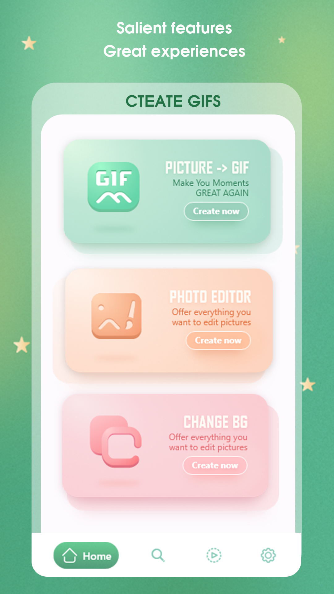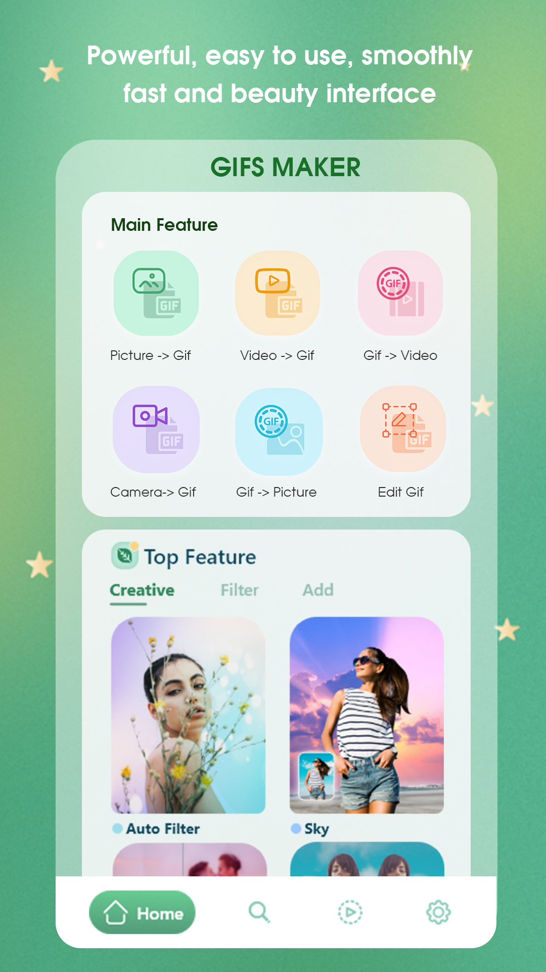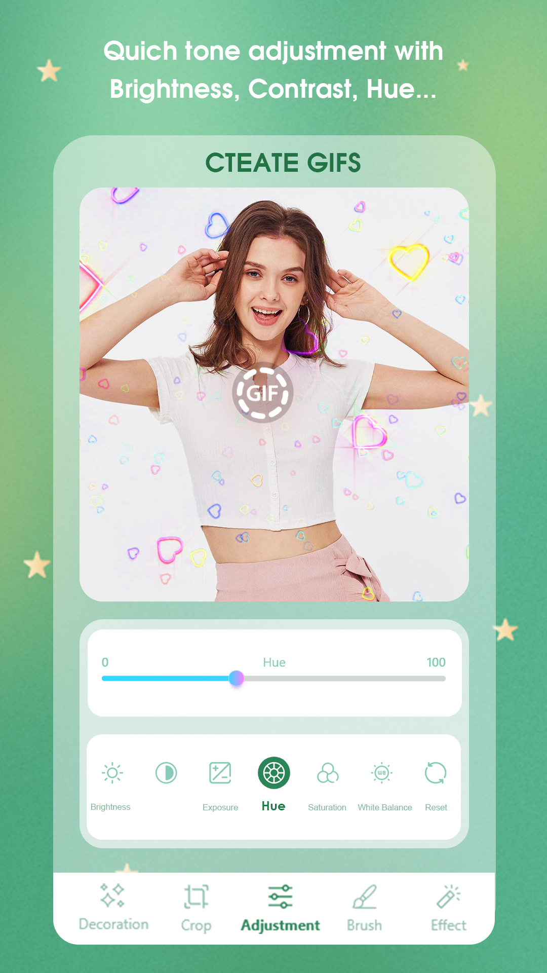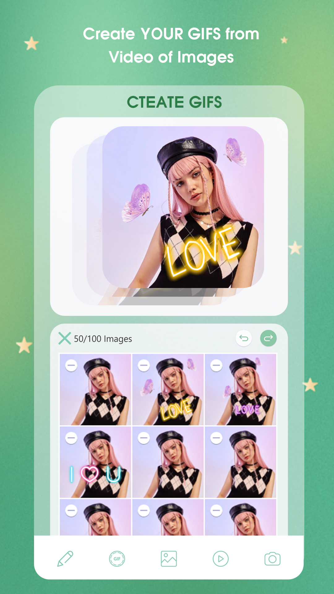 GIF creator: Make GIF from photo easily. Unleash your creativity to create cute, unique, and funny GIF animations with just a few simple steps on the GIF creator: Make GIF from photo app. Also with this GIF creator: Make GIF from photo application, we support people. Use to change the extension from photos and videos to GIF and vice versa to convert GIF to still images and Main feature: + Create GIF images: You want to save and want to make life's moments more lovely and funny, the GIF maker feature will help you turn a boring static image into a funny animated GIF than. - Create GIF images with many beautiful effects, can easily adjust the speed of the GIF, select the GIF area easily, and crop the GIF according to the optional frames in addition, we can edit the color , image balance in the toolkit edit photo. - Draw special shapes on GIF to create uniqueness. - Add unique photo effects to your GIF. - Add beautiful photo frames with full of different themes. - Crop GIF to the area you want. + Turn video into GIF: You just need to select any video and then select the area to cut the video to create GIF, continue to click and save, you have a GIF image as desired. + Create GIF with the script: You can fully take advantage of your camera to create your own script and choose the moment to create GIF, then save it. + Edit GIF images: Choose a GIF file from any G3 Studio application that will help you take out the most outstanding moments, you just need to select those moments and then do like creating a regular GIF image. + 9999 Free photo editing tools: In addition, when using Create GIF you can take advantage of our ecosystem of many powerful and completely free photo editing tools. Download now the GIF creator: Make GIF from photo app to create interesting and funny first moments with your own creativity.