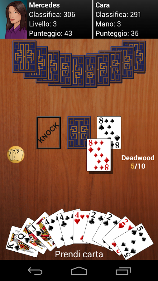 Ogni avversario ha strategie e obiettivi diversi. Gli avversari che troverai nei livelli più alti saranno più propensi a bussare, mentre ai livelli più bassi preferiscono giocare per fare gin. Gli avversari ai livelli più alti raramente prendono le carte dal mazzo degli scarti per evitare di rivelarti che cosa hanno in mano. E proprio come i giocatori esperti nella vita reale, gli avversari ai livelli superiori tengono il conteggio degli scarti per sapere quali carte sono ancora “vive”.