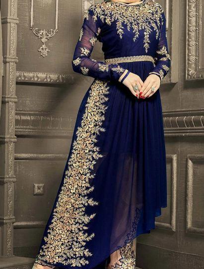 Abito Anarkali: è un tipo di farak a-line con collo e maniche ricamati o lavori in pizzo fantasia e quando indossato con il pigiama churidar, niente sembra meglio di questo abito, ampiamente indossato in India.