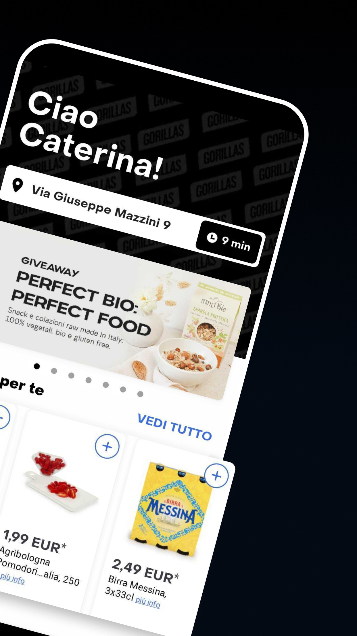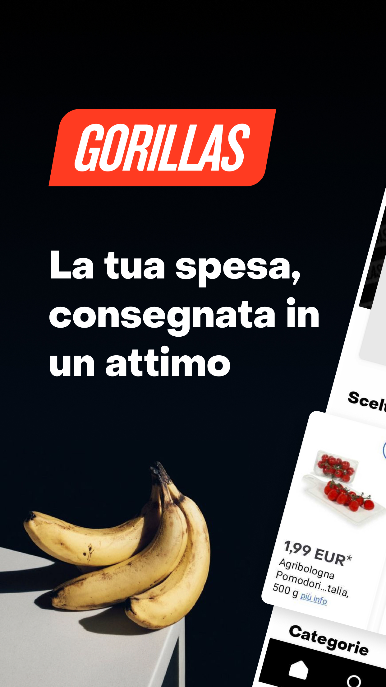 Siamo Gorillas e la nostra missione è cambiare il modo in cui fai la spesa. Perché in un mondo in cui abbiamo la tecnologia per andare sulla Luna, fare la spesa dovrebbe essere una cosa molto più veloce e anche conveniente. La cosa bella? Ti portiamo i cibi più freschi, allo stesso prezzo di quelli del super sotto casa. Scegli quello che ti serve tra frutta e verdura fresca, latticini, prodotti vegani e bevande. La tua spesa, veloce e conveniente, in un attimo da te!