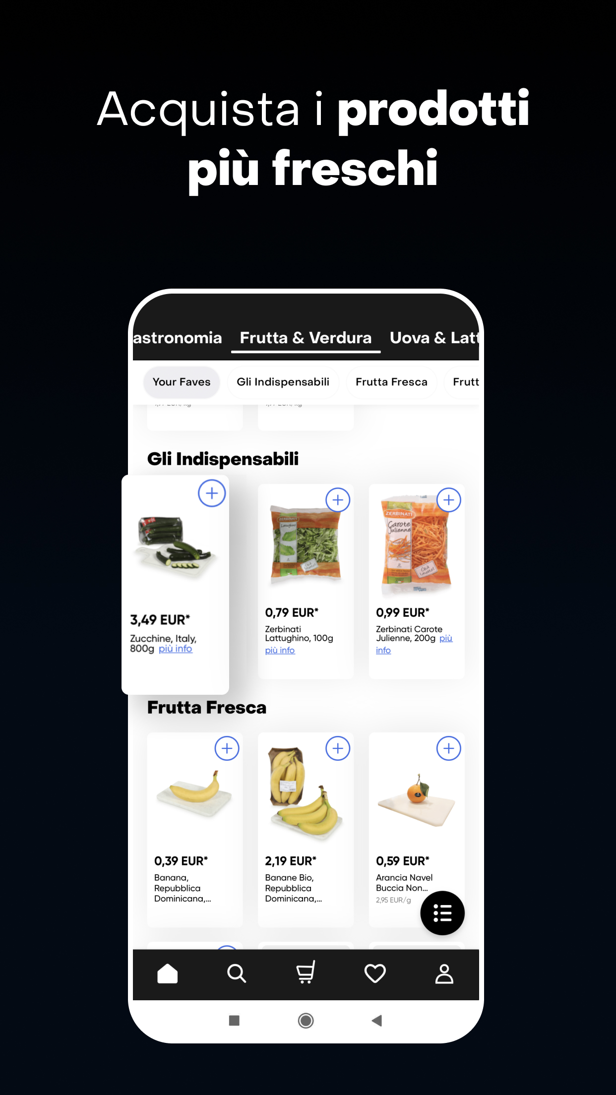 IL CIBO PIÙ FRESCO, LA CONSEGNA PIÙ VELOCE. TI PORTIAMO A CASA IN UN ATTIMO FRUTTA, VERDURA, SNACK, BIBITE E ALTRO. ALLO STESSO PREZZO DEL SUPER!