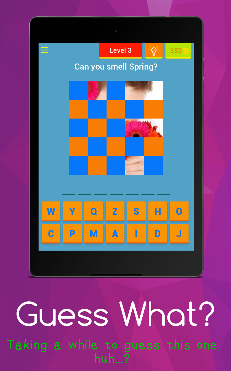 There aren’t 4 pics 1 word to choose from in this guess game. If you like brain games or word games then this is the not 4 pics 1 word game you are looking for. Use your quiz like skills to solve the words of the pictures. In this word game you have to guess restaurants, unblocked games, people, and various quiz results as well. Get ready to using your guessing skills in this word game to promote yourself to the next level. Don’t burn your brain cells while you are trying to guess the word in this brain game. In this non 4 pics 1 word game you can always ask Facebook to help you with an answer. Guess the Word: Word Games Features - Over 200 levels to guess the word on - New levels added every single week - Ask Facebook for help - Earn daily rewards if your return a play each day - So much more Download Guess the Words today and join in on the fun in this unblocked games course. Quiz yourself on your knowledge of words and pictures. If all fails, just guess. You may come up with the right word for the selected quiz in question. Download this one of many word games today. Brain games equal Guess the Word. If you need any support or have questions contact [email protected]