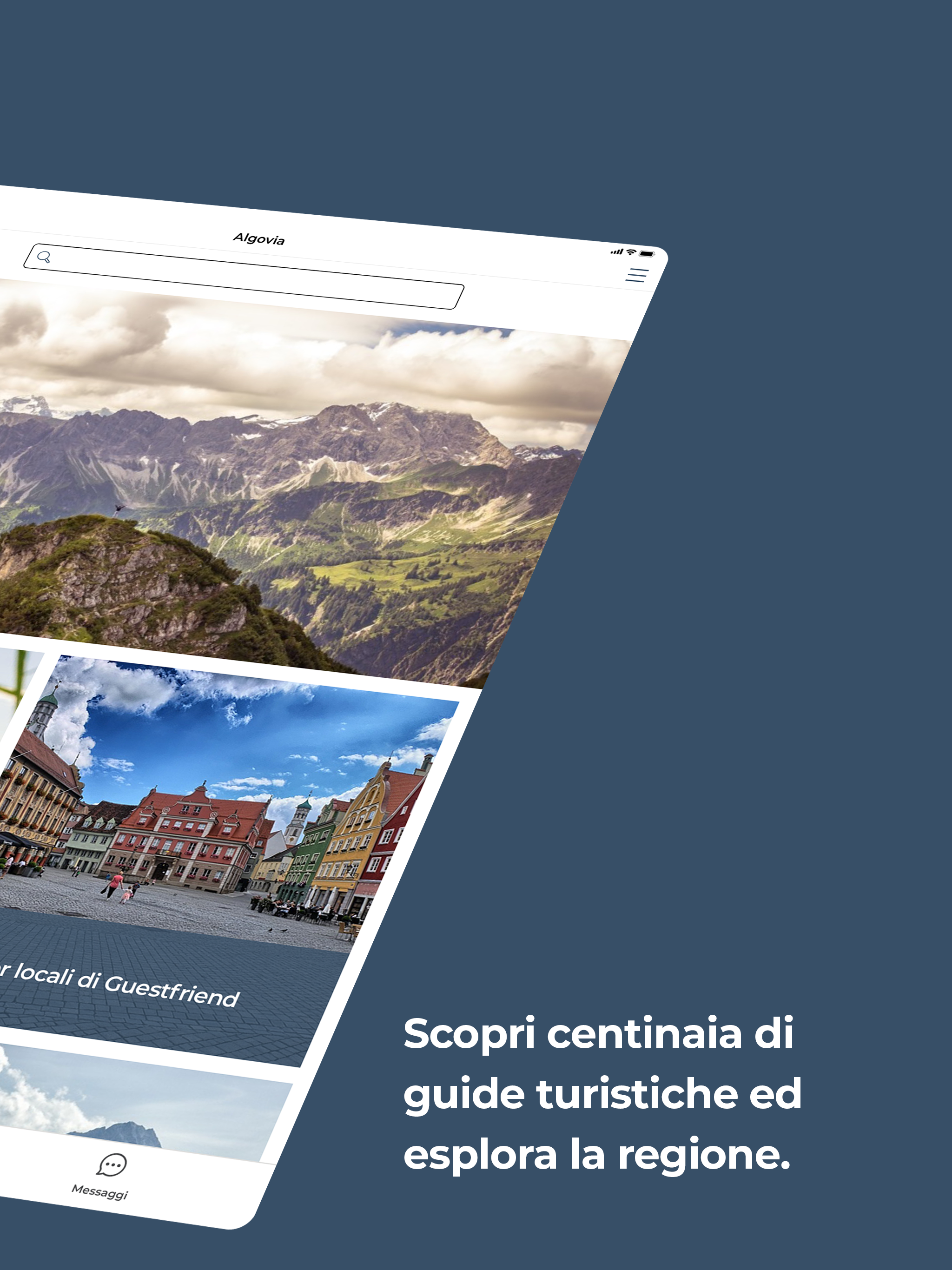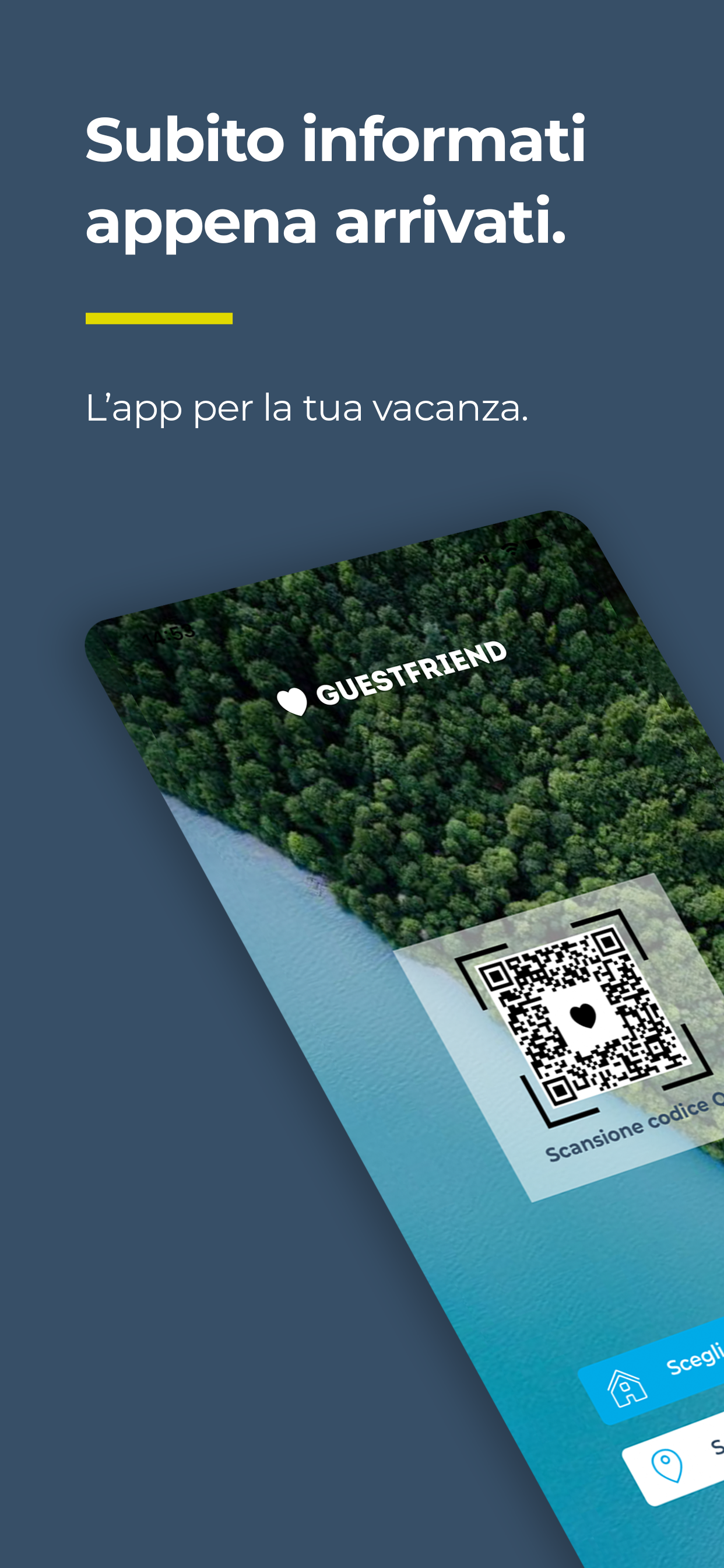 Subito informati appena arrivati! Con Guestfriend hai tutto ciò che devi sapere sulla tua vacanza in un'unica app. Scopri tante informazioni utili sulla struttura in cui soggiornerai - hotel, residence, casa vacanze o campeggio. Nella guida turistica della regione in cui trascorrerai la tua vacanza troverai inoltre numerosi consigli su escursioni e attività per ogni condizione atmosferica.