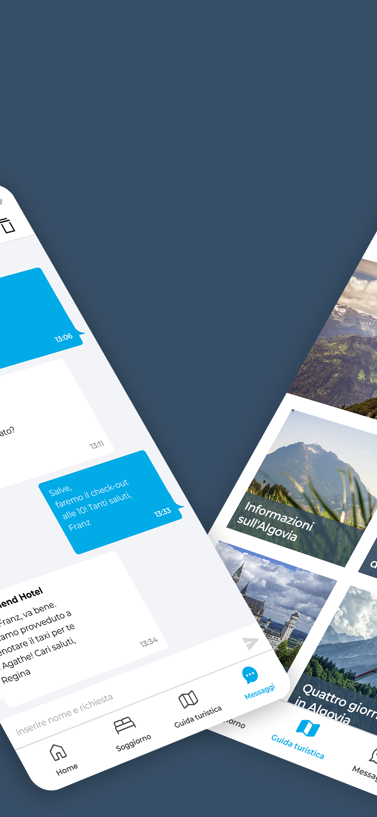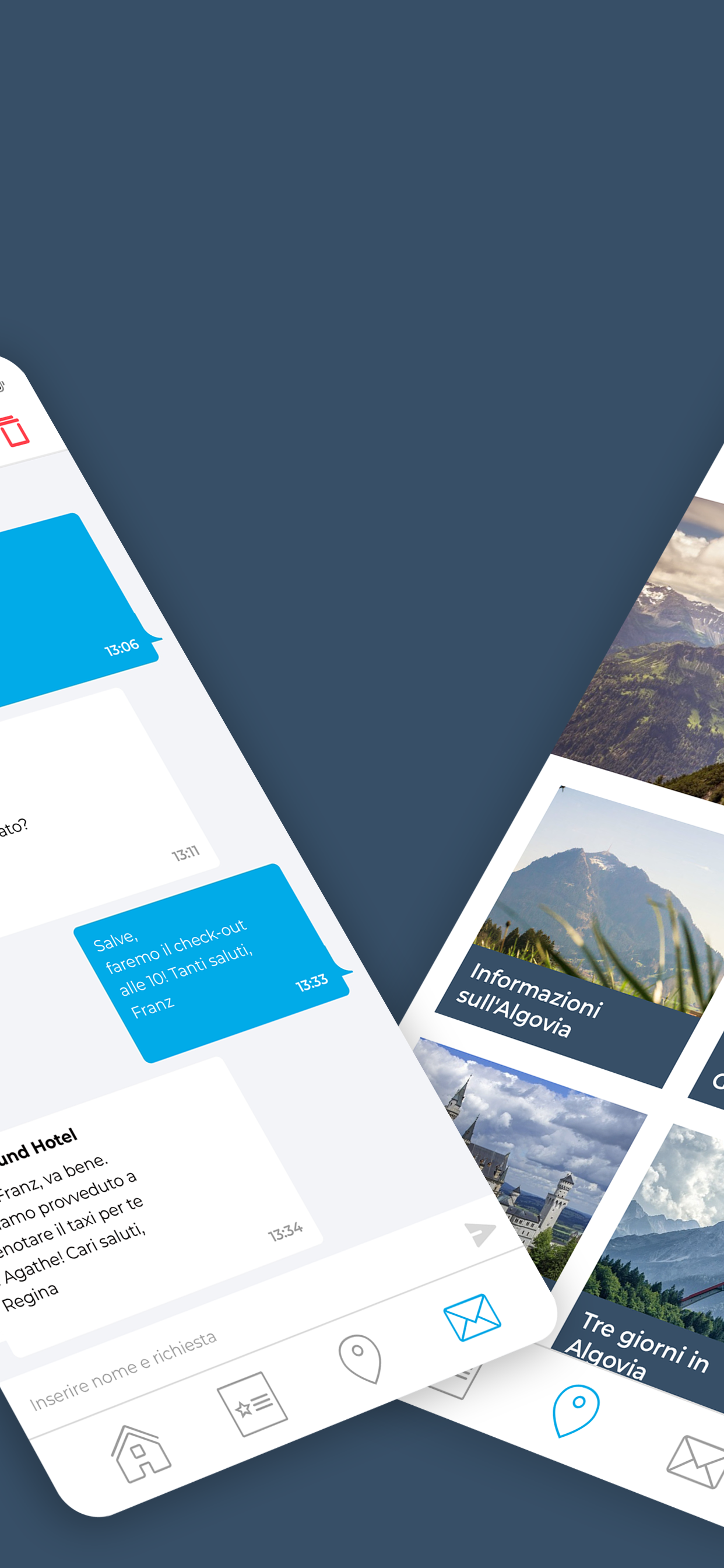 Nella Guida per gli ospiti digitale puoi chattare personalmente con il team della tua struttura in qualsiasi momento o dare un feedback sul tuo soggiorno, indipendentemente da dove ti trovi. Grazie ai messaggi push, riceverai anche notizie sul tuo hotel direttamente sul tuo smartphone – prima, durante e dopo il tuo soggiorno.