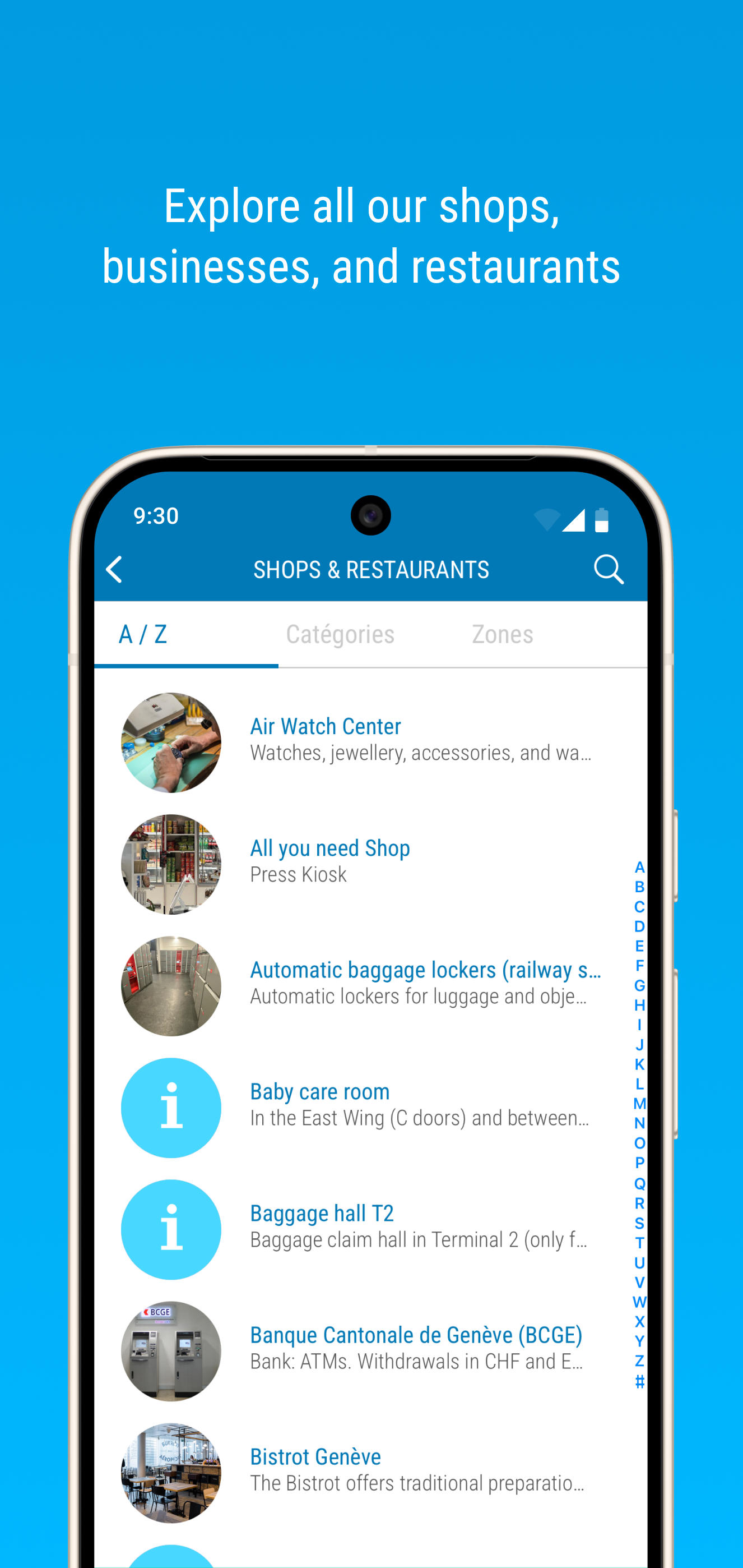 Trasportare l'aeroporto nella tasca posteriore! Più funzioni sono state aggiunte alla versione più recente di GVApp: scansione la carta d'imbarco per monitorare il tuo volo e attivare l'assistente di viaggio personale, condividere un volo e scegliere una suoneria di notifica, aggiornare la mappa interattiva - tutto gratuitamente! *** Stato del volo Prendere il monitor dell'aeroporto ovunque tu vada! Vuoi verificare se il volo è in orario? Tutti gli arrivi e le partenze da Genève Aéroport il giorno e la prossima sono elencati nella domanda. Consultare il loro status per scoprire se c'è stato alcun cambiamento. Il file su ogni volo indica il numero del volo, banchi check-in, cancello, la compagnia aerea e il tipo di aeromobile. Voli pista L'applicazione permette di monitorare qualsiasi volo in partenza o arrivo su Genève Aéroport. La funzione di tracking permette non solo di avere un facile accesso al file volo, ma anche essere avvisati di ogni cambiamento nel suo stato (push) e attivare la guida personale. È possibile accedere al file giusto direttamente dalla scansione della carta d'imbarco. Un semplice click consente di condividere le informazioni di volo di monitoraggio con i tuoi contatti! Assistente di viaggio personale Che tu sia un globetrotter stagionato o, al contrario, hanno paura ti dimentichi qualcosa, troverete un uso per l'assistente personale incluso nel file volo. La sicurezza dei passeggeri, cancello, itinerario, i collegamenti in treno / bus prossimi - ottenere le informazioni necessarie semplicemente cliccando. Tutte le tappe fondamentali, al momento della partenza o di arrivo, sono elencati. Mappa interattiva Visitate i diversi livelli e per l'aeroporto con una mappa in 3D, consultare i punti di interesse o scoprire come arrivare da un punto all'altro - non è mai stato così facile. Negozi Voglia di fare shopping? Ogni negozio ha un file. Consultare le informazioni pratiche o aggiungerlo ai tuoi preferiti. Se non riesci a trovare un negozio in aeroporto, visualizzarlo sulla mappa e seguire il percorso indicato. Parcheggi Vieni a l'aeroporto in auto? Scopri come occupato i parcheggi sono e calcolare il costo utilizzando l'applicazione. Sei una di quelle persone che non può mai ricordare dove hanno parcheggiato la loro auto? GVApp ricorda per voi!
