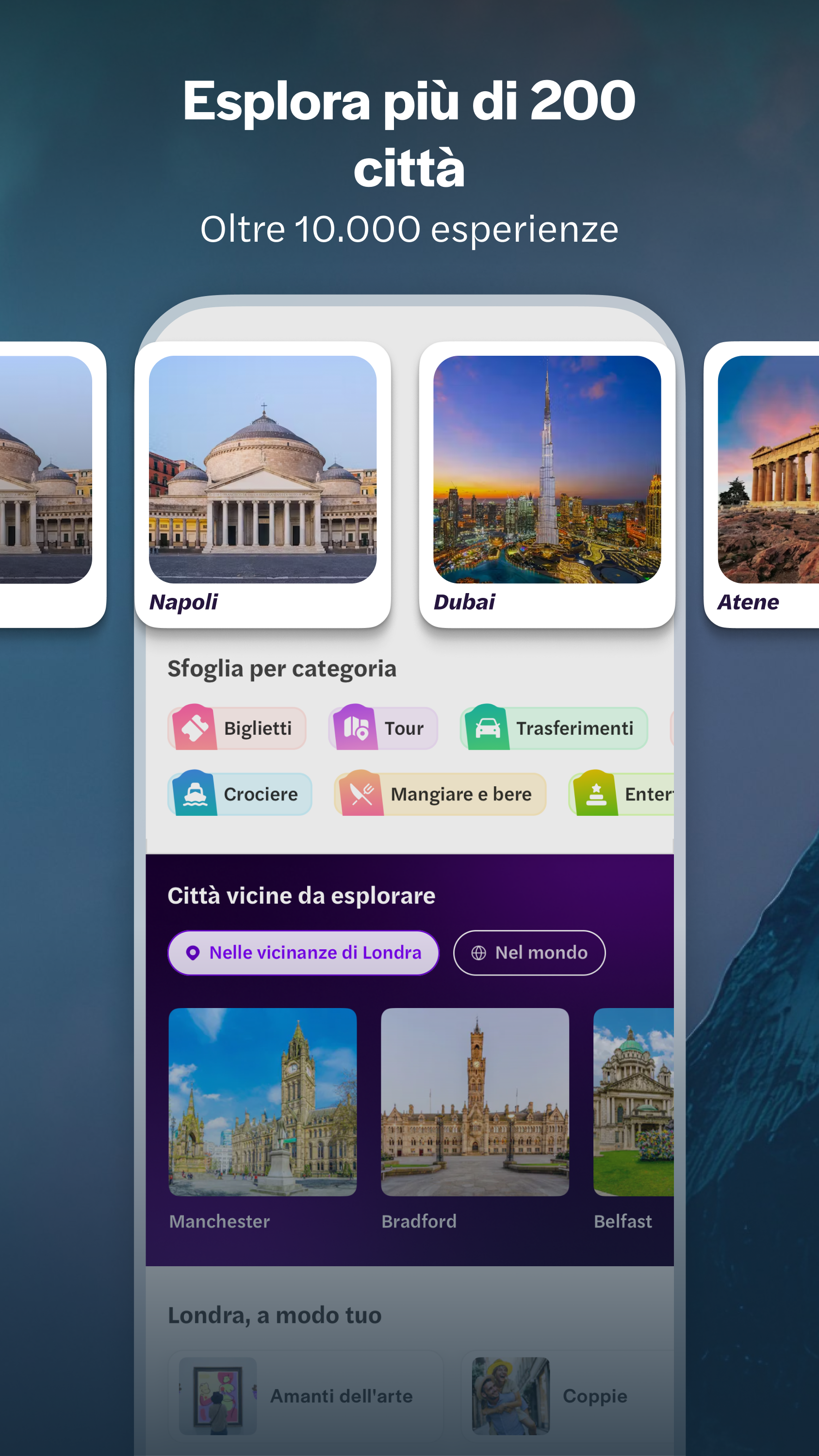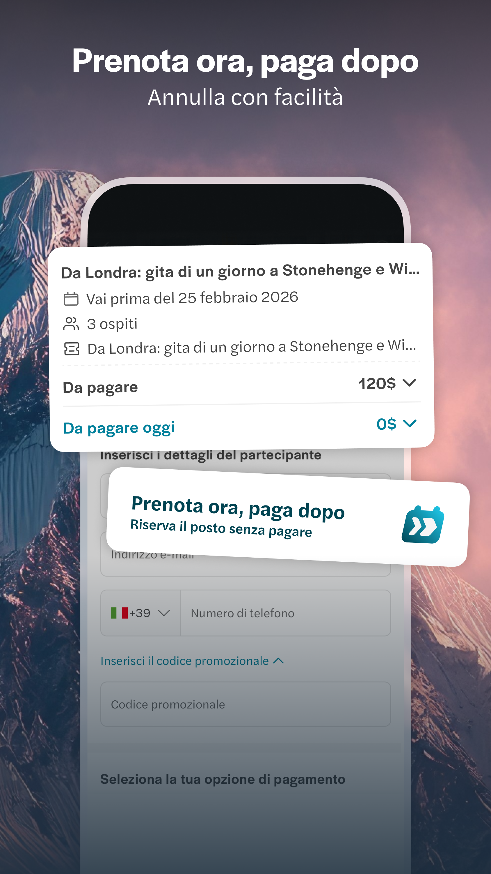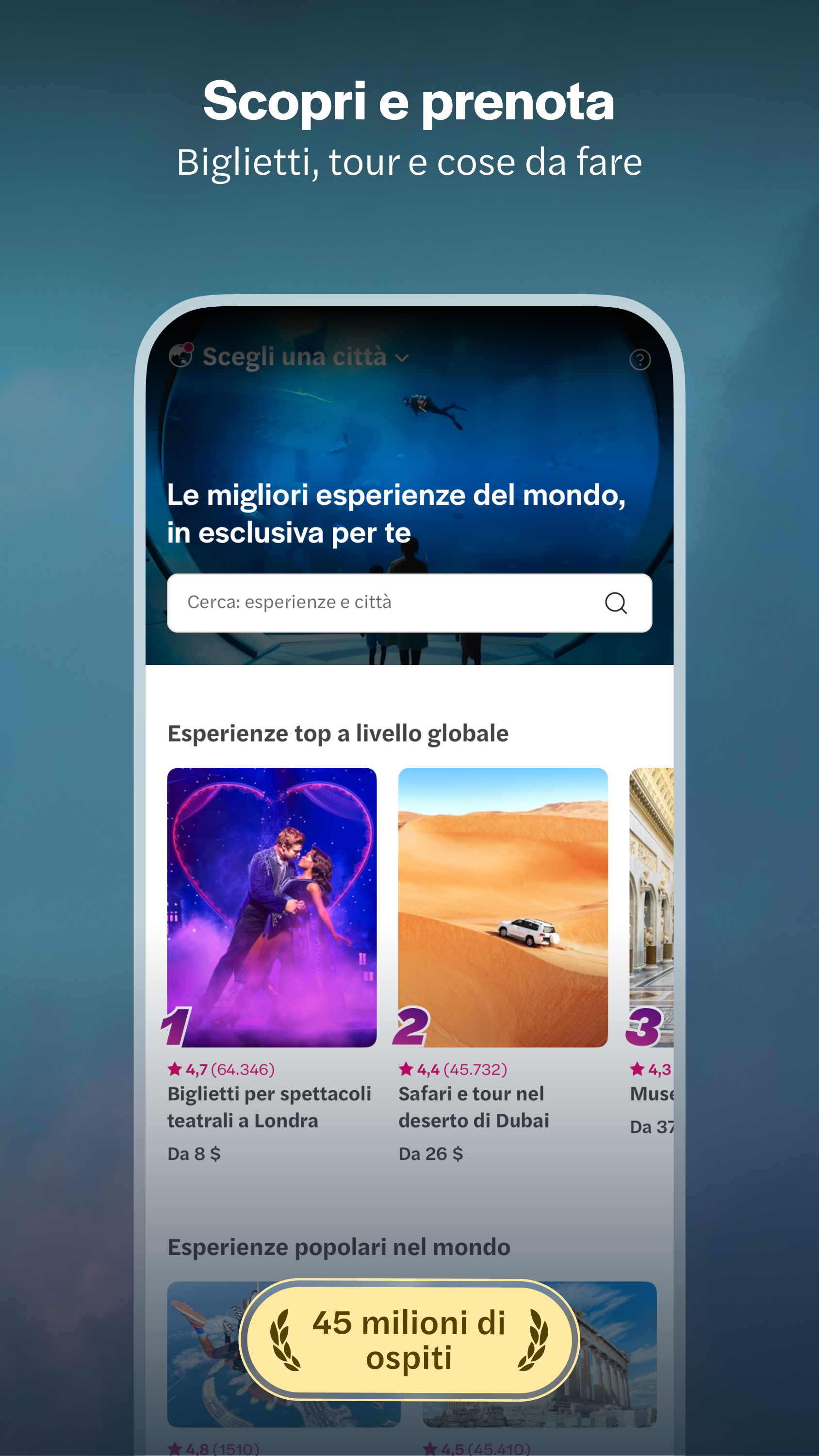Prenota biglietti e tour ovunque tu sia con l’app Headout. Vivi esperienze e viaggi indimenticabili in oltre 100 città di tutto il mondo. Scopri i migliori tour delle attrazioni iconiche. Acquista biglietti salta la fila. Vivi tour guidati, spettacoli e avventure locali con un’app semplice, veloce e sicura. Headout ti aiuta a prenotare le esperienze più emozionanti in pochi secondi, anche last minute. ✨ Cos’è Headout? Headout è l'app che rende ogni viaggio più facile e coinvolgente. Ti connette a migliaia di esperienze selezionate: biglietti per attrazioni famose, tour guidati, pass città, eventi culturali, spettacoli, escursioni e molto altro. Conferma immediata, opzioni flessibili e supporto in tempo reale rendono la prenotazione semplice e senza stress. 🌍 Cosa puoi fare con Headout? - Prenotare biglietti per attrazioni in oltre 100 città come Roma, Parigi, New York, Dubai, Londra, Tokyo e molte altre - Accedere a tour guidati, escursioni, spettacoli e musei, con opzioni esclusive e suggerimenti locali - Risparmiare tempo grazie ai biglietti Salta la Fila - Pianificare il viaggio in pochi tocchi, con un’app intuitiva e multilingue - Ricevere consigli e itinerari personalizzati in base al tuo stile di viaggio - Effettuare prenotazioni last minute anche mentre sei già in viaggio 💡 Perché scegliere Headout? 🎫 Conferma immediata e biglietti digitali sempre pronti sul tuo telefono 💳 Prenota ora, paga dopo con opzioni di pagamento flessibili 🔒 Pagamenti sicuri e cancellazione gratuita su tante attività 📱 Accesso offline ai tuoi biglietti, l'ideale per chi viaggia senza connessione 🧭 Esperienze personalizzate per ogni tipo di viaggiatore: coppie, famiglie, amici o viaggiatori solitari ☎️ Supporto clienti 24/7, via chat, email o telefono 🧳 Il tuo viaggio comincia qui Con Headout puoi: - Prenotare esperienze autentiche in pochi secondi - Trovare le migliori attività al miglior prezzo - Vivere ogni viaggio, ogni weekend, ogni uscita come un’avventura speciale Scarica Headout oggi e inizia a scoprire il mondo a modo tuo. Tour, biglietti, esperienze e attività indimenticabili, a portata di clic. 🎒🌟