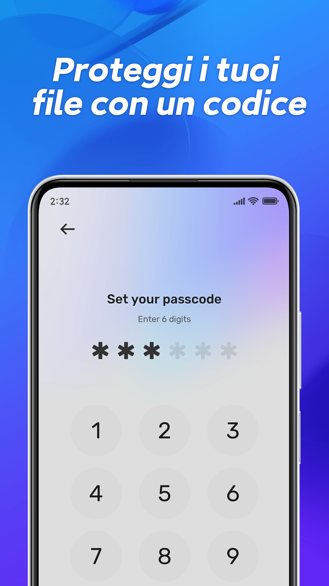 3. PasswordL'app ti chiederà di inserire la password ogni volta che la apri, o che ci torni dopo aver sbloccato il tuo dispositivo o essere passato da un'app a un'altra. Non c'è possibilità che altre persone accedano ai tuoi contenuti protetti senza conoscere la password.