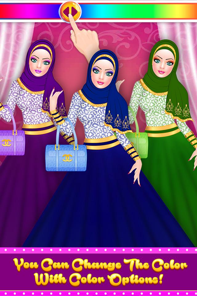 - scegli un vestito per la tua bambola hijab da un sacco di opzioni; puoi anche cambiare il colore del vestito facendo scorrere l'opzione del colore indicata