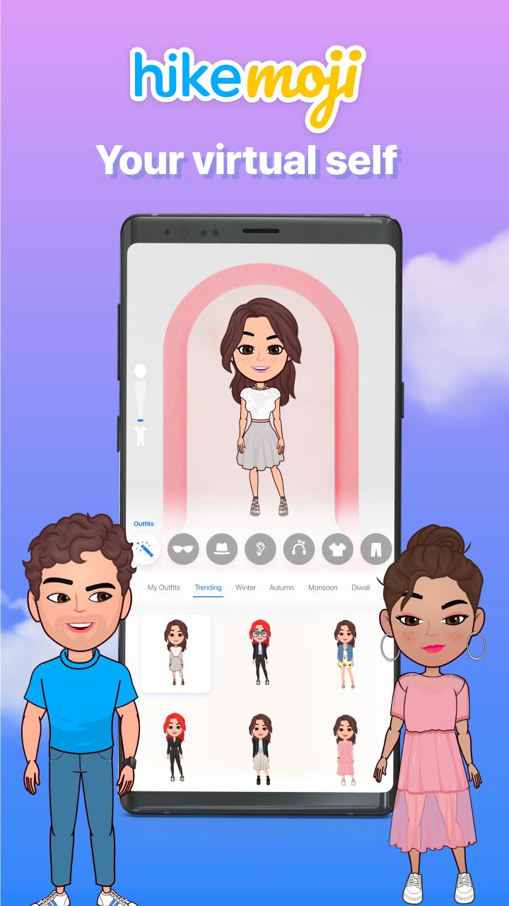 HikeMoji - Create your unique avatar by just clicking a selfie! Personalise it with your fabulous sense of style from our wide range of fashionable, on-trend clothing, footwear, accessories, hairstyles, make-up, jewellery and more.