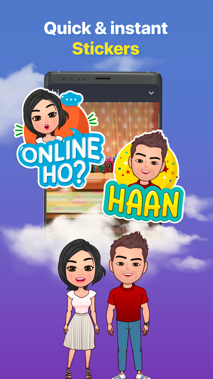 HikeMojis magically convert to hundreds of automatic, expressive stickers when you type! Available in Hindi, English, Gujarati, Marathi, Bengali, Tamil, Kannada, Telugu, and Malayalam.