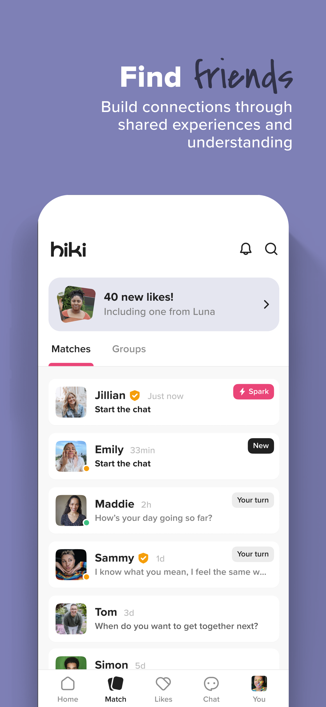 Incontra, abbina, chatta con nuovi amici su Hiki. Smaschera, impara e crea potenti amicizie all'interno del nostro sandbox di esperienze condivise e supporto costante.