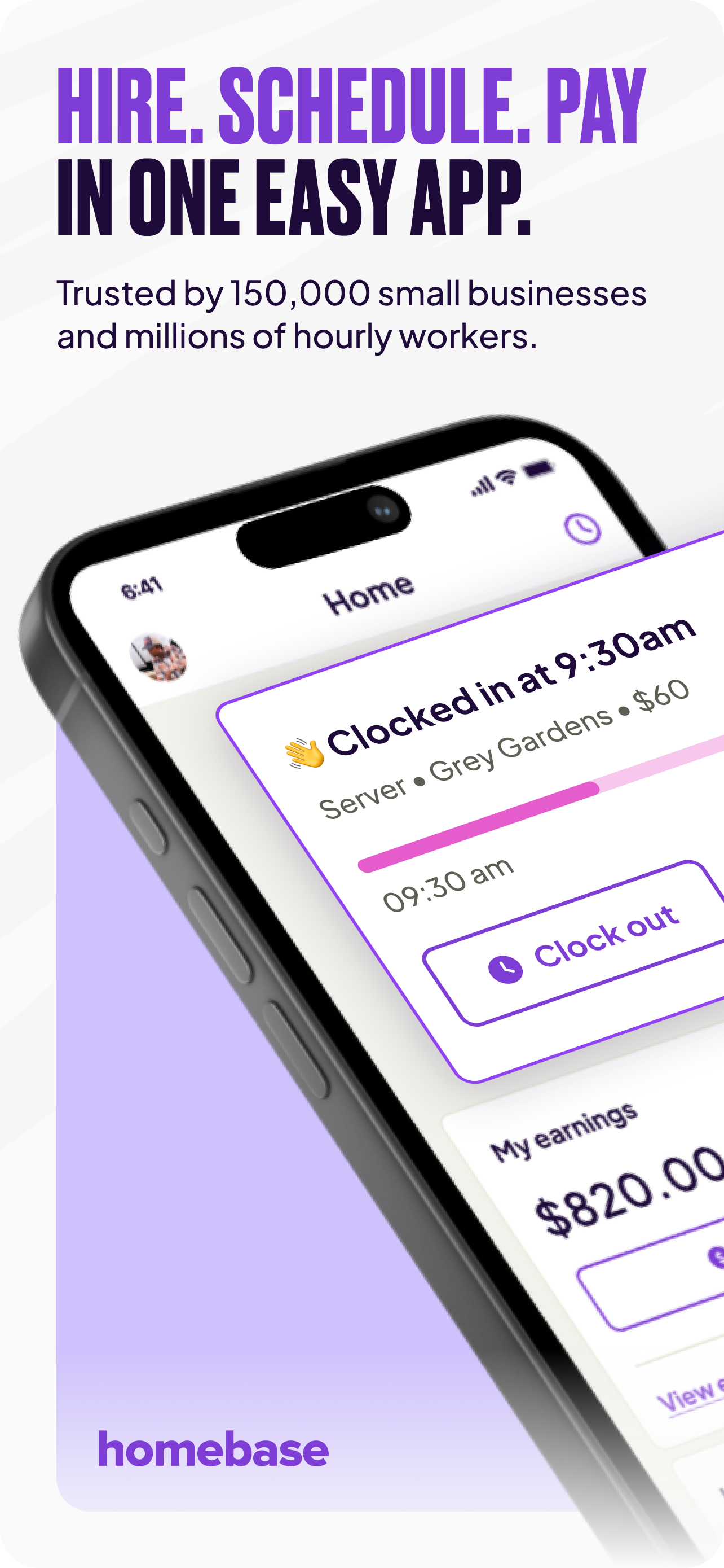 Homebase è l'app facile da usare per i titolari di piccole imprese che hanno bisogno di creare calendari, impostare un cronometro, gestire le paghe, assumere dipendenti, gestire le risorse umane e altro ancora. Unisciti alle oltre 150.000 piccole imprese che già utilizzano Homebase per gestire i loro team orari e risparmia più di 5 ore ogni settimana! Traccia le ore, attiva un cronometro mobile, gestisci i costi del lavoro e monitora le vendite con gli strumenti di Homebase. I dipendenti possono timbrare l'ingresso e l'uscita dai loro telefoni e le ore vengono automaticamente inviate ai fogli presenze affinché i manager possano verificarne la conformità. La gestione delle paghe di Homebase semplifica la retribuzione del tuo team. Il sistema di gestione delle paghe si integra direttamente con i fogli presenze, consentendo ai responsabili dei team di risparmiare ore, e il monitoraggio integrato della conformità garantisce che tu sia sempre aggiornato sulle leggi sul lavoro. Anche la pianificazione dei dipendenti è più semplice. Crea e condividi i calendari in pochi minuti. Gestisci più team o reparti, approva le richieste di ferie, abilita i cambi di turno e registra la disponibilità del team. Puoi creare modelli di pianificazione o utilizzare l'assistente di pianificazione basato sull'intelligenza artificiale per risparmiare ancora più tempo. App più votata per le piccole imprese: Migliori servizi di gestione paghe 2026, Forbes Miglior software di gestione presenze per dipendenti recensito nel 2026, People Managing People Miglior software di pianificazione dipendenti, Recensioni B2B (2025) Migliori servizi di gestione paghe per il 2025, PC Mag Miglior software di pianificazione del personale per piccole imprese – Zendesk Miglior orologio marcatempo in assoluto per piccole imprese 2025 – Fit Small Business Migliore per esperienza complessiva, Miglior software di pianificazione dipendenti, – Business.com "Il miglior strumento di comunicazione per i dipendenti di sempre!" - Theresa Fouquette, titolare di Bliss Small Batch Creamery "Sto risparmiando centinaia di ore." - Primo Stropoli, proprietario di Tetta's Market Homebase è l'app completa per la gestione delle piccole imprese. Gestisci turni, paghe, risorse umane, assunzioni, fogli presenze, presenze del team e altro ancora dal tuo telefono. Scarica Homebase oggi stesso! FUNZIONALITÀ DI HOMEBASE GESTIONE DI PAGHE E PAGHE - Gestione delle paghe semplificata con calcoli automatici - Generazione di fogli presenze con la nostra app per la gestione delle paghe - Elaborazione di fogli presenze e paghe semplificata con la funzione di ingresso e uscita in-app - App per la gestione delle paghe compatibile con provider come Gusto, Intuit Quickbooks Online Payroll o Square Payroll PIANIFICAZIONE E GESTIONE DEI TURNI PER PICCOLE IMPRESE - Utilizzo di modelli per creare e condividere rapidamente i turni - Invia promemoria per i turni - Utilizzo di un tracker di disponibilità dei dipendenti - Gestione delle richieste di ferie GESTIONE DELLE TIMBRETTE E RILEVAMENTO DELLE PRESENZE - Visualizzazione di ore, pause, straordinari, orari di ingresso e uscita - Ricevi avvisi quando i dipendenti si avvicinano agli straordinari - Registra il tuo ingresso con i migliori sistemi POS come Clover, Square, Toast e altri REGISTRAZIONE DELLE PRESENZE DI SQUADRA E PIANIFICAZIONE DEI DIPENDENTI - Funzionalità dell'app per la gestione delle paghe che semplificano la gestione degli stipendi - Registra il tuo ingresso e uscita direttamente Con gli strumenti per le piccole imprese di Homebase - Visualizza le note sui turni, le previsioni di guadagno e accedi alla pianificazione dei dipendenti senza interruzioni - Visualizza le richieste di ferie e gli scambi di turni COMUNICAZIONE DI SQUADRA - Crea chat di gruppo e connettiti con il team in tempo reale per la tua piccola impresa - Invia messaggi a dipendenti e colleghi in tutta l'azienda Ricevi assistenza tramite telefono, e-mail e chat. Piani Homebase - Piano base gratuito per un massimo di 20 dipendenti - Piano Essentials a $ 24,49/mese con pianificazione avanzata - Piano Plus a $ 59,99/mese con assunzioni e ferie retribuite - Piano all-in-one a $ 99,95/mese con assunzioni, onboarding e risorse umane - Gestione paghe, Gestione mance, Gestione attività, Verifiche dei precedenti e altro ancora disponibili come componenti aggiuntivi Aggiornamenti in-app: abbonati a un piano a pagamento per le funzionalità aggiuntive. L'account addebita il pagamento alla conferma dell'acquisto. L'abbonamento si rinnova automaticamente a meno che il rinnovo automatico non venga disattivato almeno 24 ore prima della fine del periodo corrente. Il rinnovo verrà addebitato sul tuo account entro 24 ore dalla fine del periodo in corso. Il rinnovo automatico può essere disattivato in qualsiasi momento accedendo alle impostazioni dopo l'acquisto. Per ulteriori informazioni, consulta i Termini di utilizzo e l'Informativa sulla privacy. Termini di utilizzo: https://app.joinhomebase.com/terms Informativa sulla privacy: https://app.joinhomebase.com/privacy