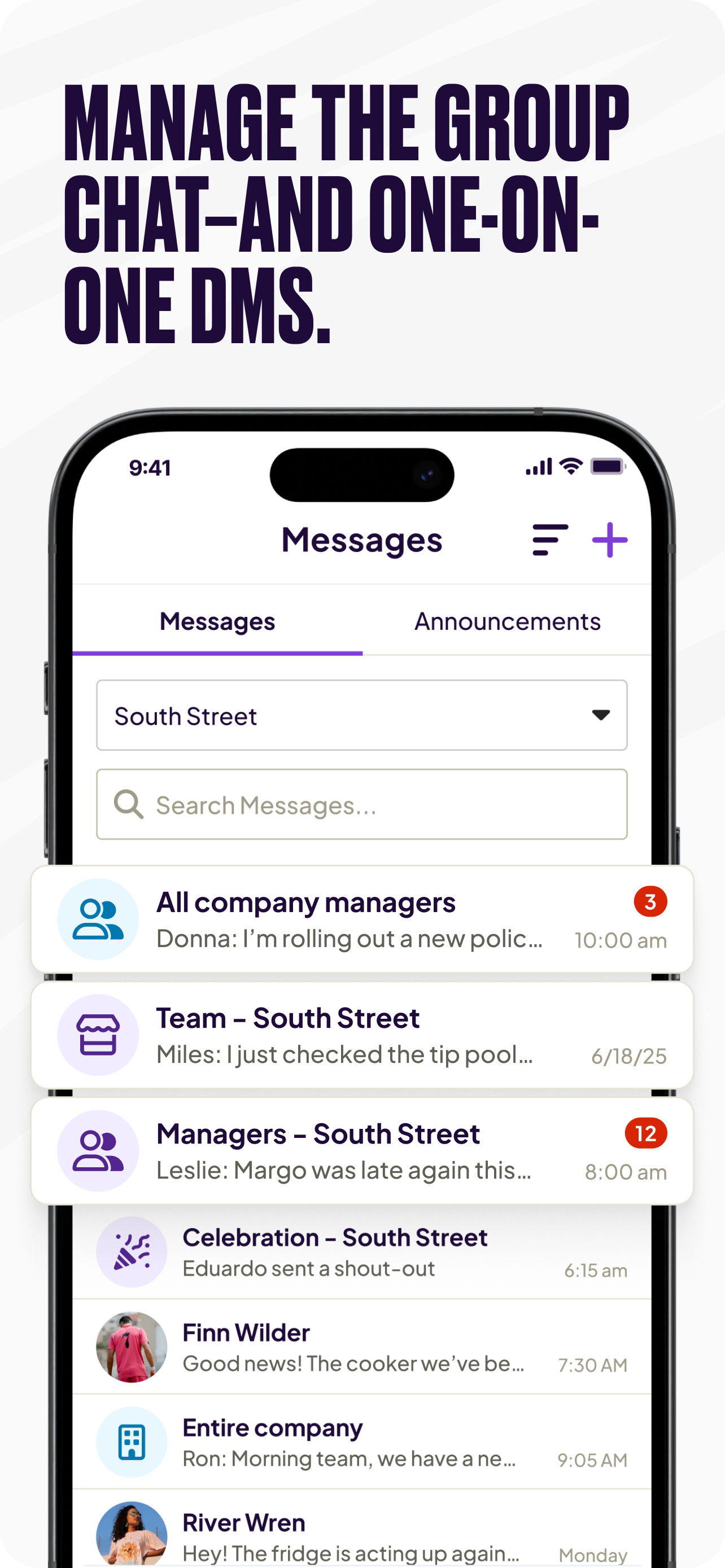 Messages just got an upgrade! Find unread messages and thread replies more quickly. Multi-location businesses now have the option to use company-wide channels to keep your whole team connected.