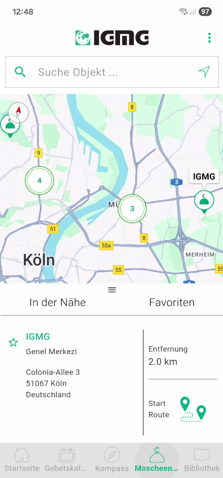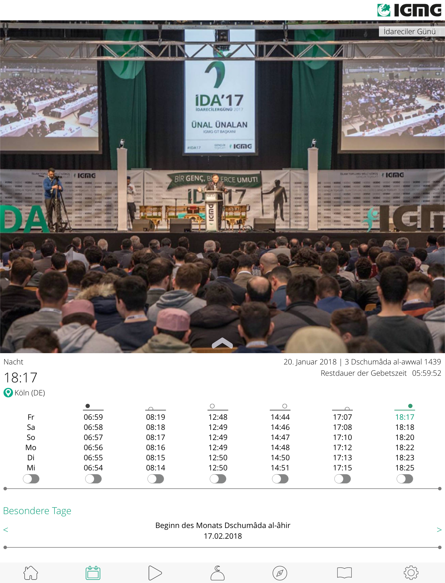 L'app della Comunità islamica Millî Görüş (IGMG) mira a sostenere i musulmani nell'adempimento dei loro doveri religiosi più facilmente e nel rendere più varia la loro vita sociale e culturale.