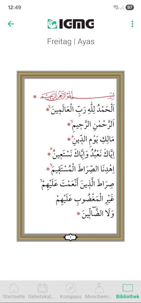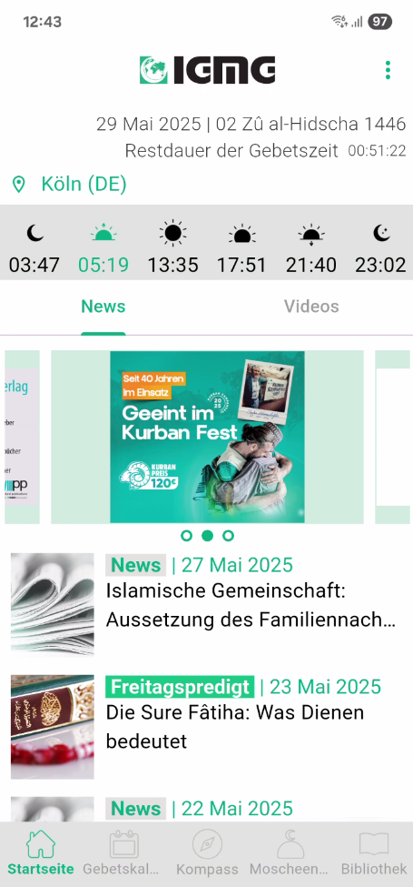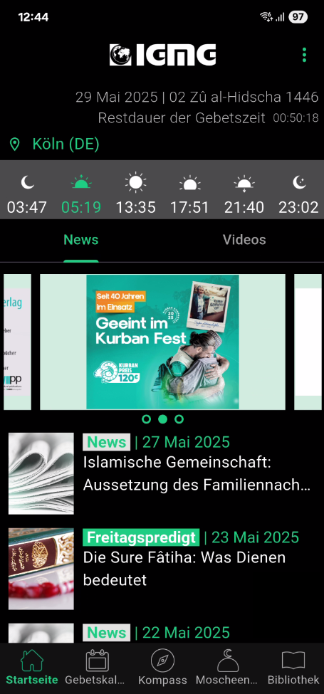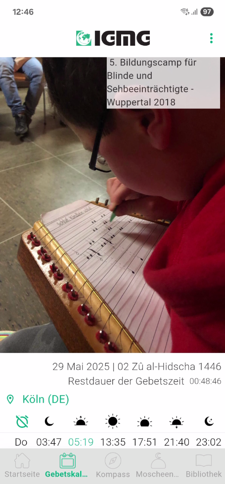 L'app IGMG è bilingue (turco, tedesco) e offre i seguenti contenuti:
