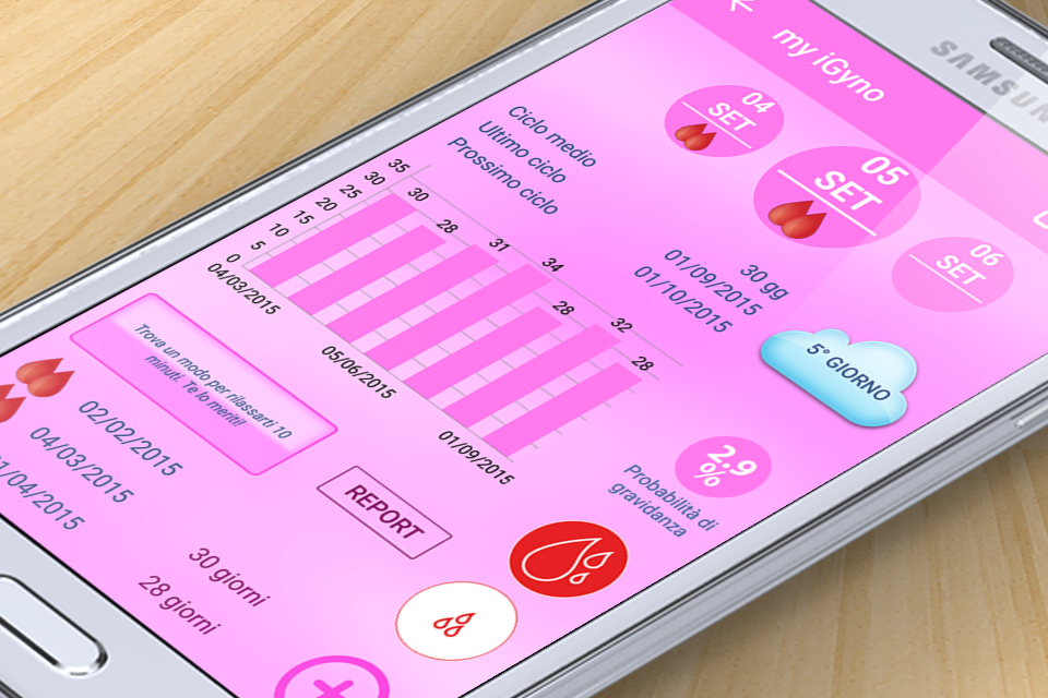 Dopo il successo mondiale di iGyno per iOS, siamo orgogliosi di presentarvi iGyno per Android! *** iGyno è l'App più comprata in assoluto su App Store ==> www.bette.it/top.pdf *** *** Inserita da Apple nella sezione "App e giochi di successo" *** *** L'unica App che calcola il rischio/probabilità di gravidanza *** *** L'unica App che ti consente di condividere i tuoi dati con il tuo partner grazie a iGyno for Men *** *** L'unica App che ti consente di accedere con l'impronta digitale (per gli smartphone con lettore delle impronte e Android 6) *** *** Ora anche con il Widget e con My iGyno sei tu a disegnare l'app *** iGyno è l’App che tutte le donne stavano aspettando, sviluppata con la collaborazione di alcuni medici dell’Associazione Europea Ginecologi. iGyno sarà il tuo ginecologo virtuale, che ti aiuterà a gestire tutti gli aspetti del mondo femminile e ti insegnerà a fare prevenzione, fattore determinante per la diagnosi delle malformazioni tumorali. Tutto è supportato da una grafica e da un’animazione straordinarie, unite a una semplicità d’uso senza eguali. *** Unico al mondo! *** Da oggi iGyno è la prima App al mondo ad offrire una consulenza all'interno dell'App; in particolare l'utente avrà la possibilità di acquistare e di ricevere all'interno di iGyno un vero e proprio consulto ginecologico effettuato dal nostro team di ginecologi professionisti. La risposta è garantita entro un'ora dal ricevimento del tuo messaggio, in qualsiasi ora del giorno e in qualsiasi giorno della settimana, week end compresi. Tutto avverrà all'interno di una comodissima chat di messaggistica, che garantirà il totale anonimato e la più assoluta riservatezza. iGyno vince il prestigioso premio SMAU Mob App Awards come migliore App dell'anno ( www.bette.it/Premio.pdf ). Inoltre vince il premio Giuria Popolare votato da una giuria di sviluppatori. iGyno, il tuo ginecologo virtuale, è campione di vendite in America, Inghilterra, Germania, Svizzera e Italia!! Grazie a tutte le donne!! iGyno ha rappresentato l'Italia al XII Congresso Europeo dei Ginecologi che si è tenuto ad Atene. I media italiani parlano del fenomeno iGyno: Glamour ==> www.bette.it/glamour.pdf IO Donna, settimanale del Corriere della Sera ==> www.bette.it/io_donna.pdf Vanity Fair ==> www.bette.it/vanity.pdf Vediamo nel dettaglio tutte le caratteristiche. • Previsione del ciclo mestruale, ovulazione, giorni fertili, giorni in cui è più probabile concepire un maschietto piuttosto che una femminuccia e giorno ideale per eseguire il test di gravidanza in caso di ritardo mestruale. • Gestione del proprio calendario mestruale, con la possibilità di inserire note giornaliere e fino a 23 tra sintomi fisiologici e stati d’animo. Inoltre è prevista la possibilità di segnalare con dei cuoricini i giorni in cui è avvenuto un rapporto sessuale. Niente ti potrà più sfuggire! Inoltre ti consentirà di pianificare meglio le tue vacanze o eventi importanti. • Video dimostrativo di come effettuare correttamente l’autopalpazione al seno. Immagini aggiuntive per monitorare cambiamenti nel seno da segnalare al medico di fiducia. • Grafici accattivanti e animati che mostrano la posizione attuale all’interno del tuo ciclo mestruale. Potrai vedere l’evoluzione del ciclo ovarico, della temperatura corporea, dei livelli ormonali e del ciclo uterino. • Notifiche push. All’ora che desideri, sarai avvisata che stanno per arrivare le mestruazioni, l’ovulazione e i giorni fertili. Inoltre, l’App ti ricorderà di fare il test di prevenzione o, più semplicemente, di assumere la pillola anticoncezionale giornaliera. • Report personalizzati di tutti i tuoi dati che potrai far esaminare al ginecologo. • Salvataggio/ripristino del database L'App è dedicata a mia mamma, morta all'età di 70 anni a causa di un tumore al seno.