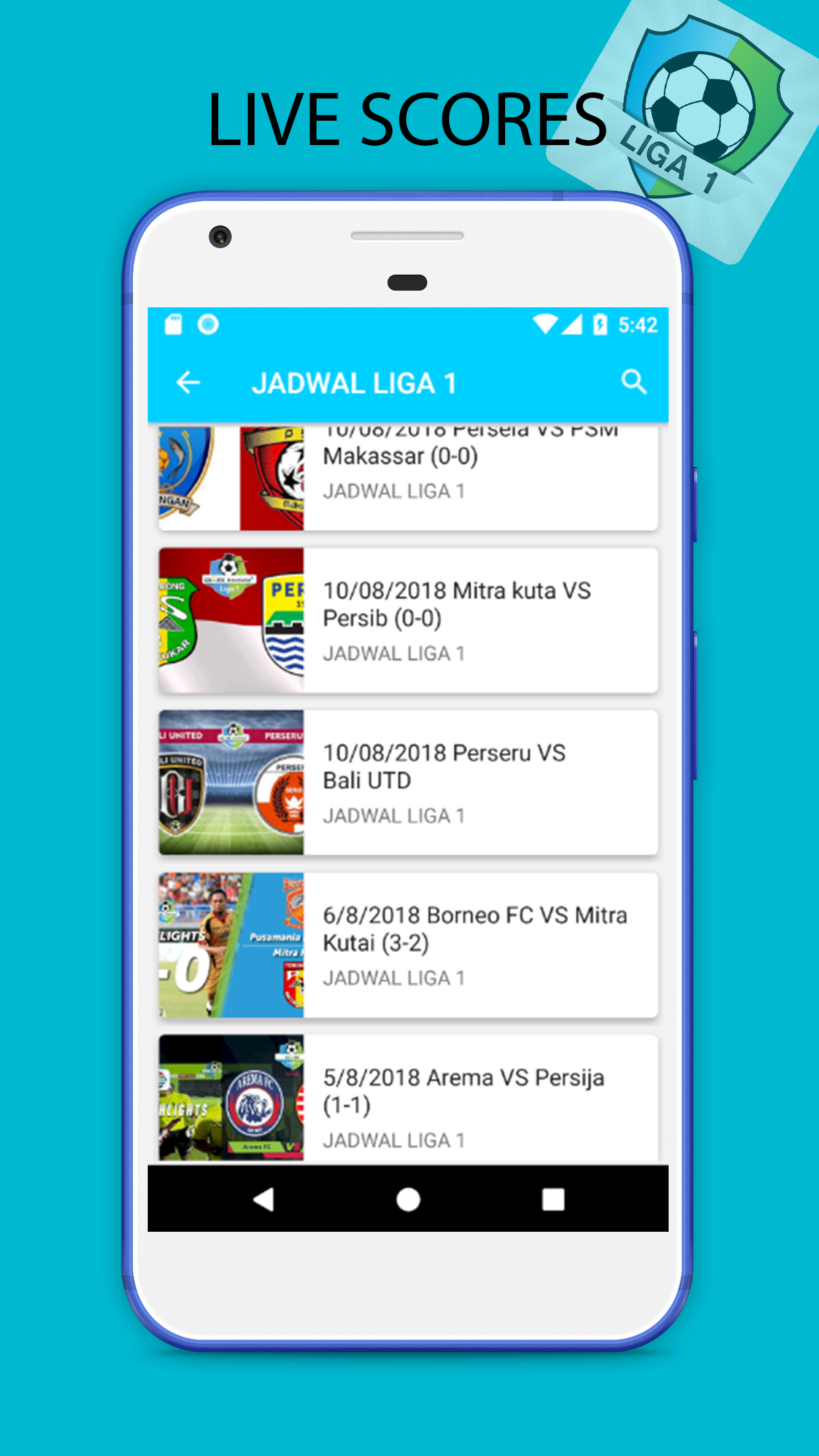 ⚽️All liga 1. All Competitions Aplikasi Liga 1 Match membuat Anda tetap terhubung dengan jadwal, skor, klasemen, dan informasi terbaru klub kesayangan anda dalam kompetisi teratas sepakbola Indonesia. Pertandingan Aplikasi Liga 1 Match menghadirkan Live Score dan hasil untuk semua pertandingan dilengkapi dengan statistik. Data seluruh klub ??All liga 1 indonesia. All Competitions. One App Aplikasi Liga 1 Match memberikan data pemain terbaru seluruh klub dilengkapi dengan foto-foto Klasemen Aplikasi Liga 1 Match selalu mengupdate klasemen untuk tepat setelah pertandingan berakhir, sehingga tidak akan tertinggal info terbaru posisi klub kesayangan Anda. Jadwal Pertandingan Aplikasi Liga 1 Match menjadi acuan update jadwal pertandingan terbaru. Statistik Pemain Aplikasi Liga 1 Match menampilkan detail statistik pemain : Gol, Assist, Tembakan, Operan dan Tekel. -------- Klub Liga 1 Match 2018: * AREMA FC * BALI UNITED FC * BHAYANGKARA FC * BORNEO FC * MADURA UNITED FC * MITRA KUKAR FC * PERSEBAYA * PERSELA LAMONGAN * PERSERU * PERSIB BANDUNG * PERSIJA JAKARTA * PERSIPURA JAYAPURA * PS BARITO PUTERA * PS.TIRA * PSIS SEMARANG * PSM MAKASSAR * PSMS MEDAN * SRIWIJAYA FC