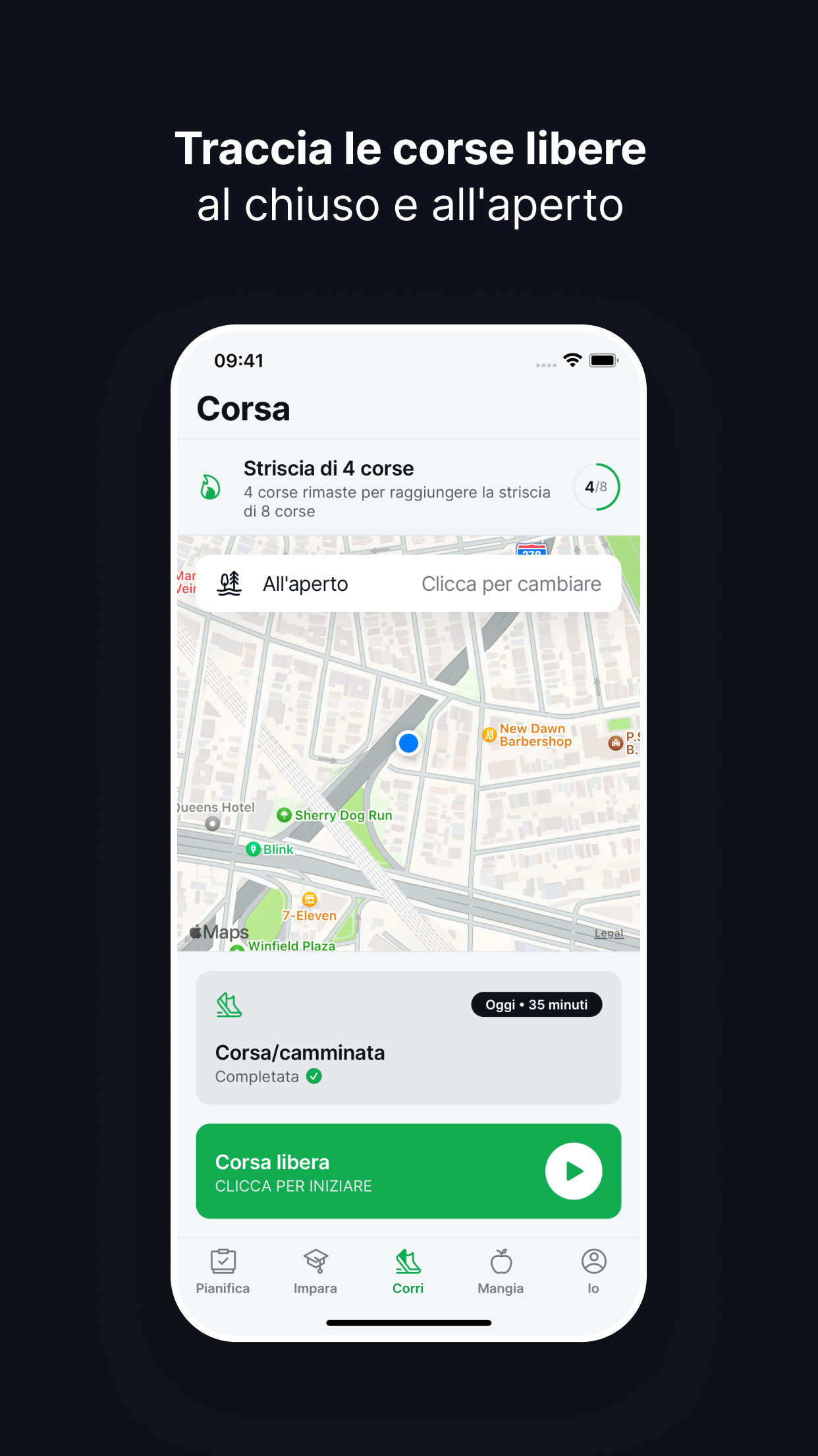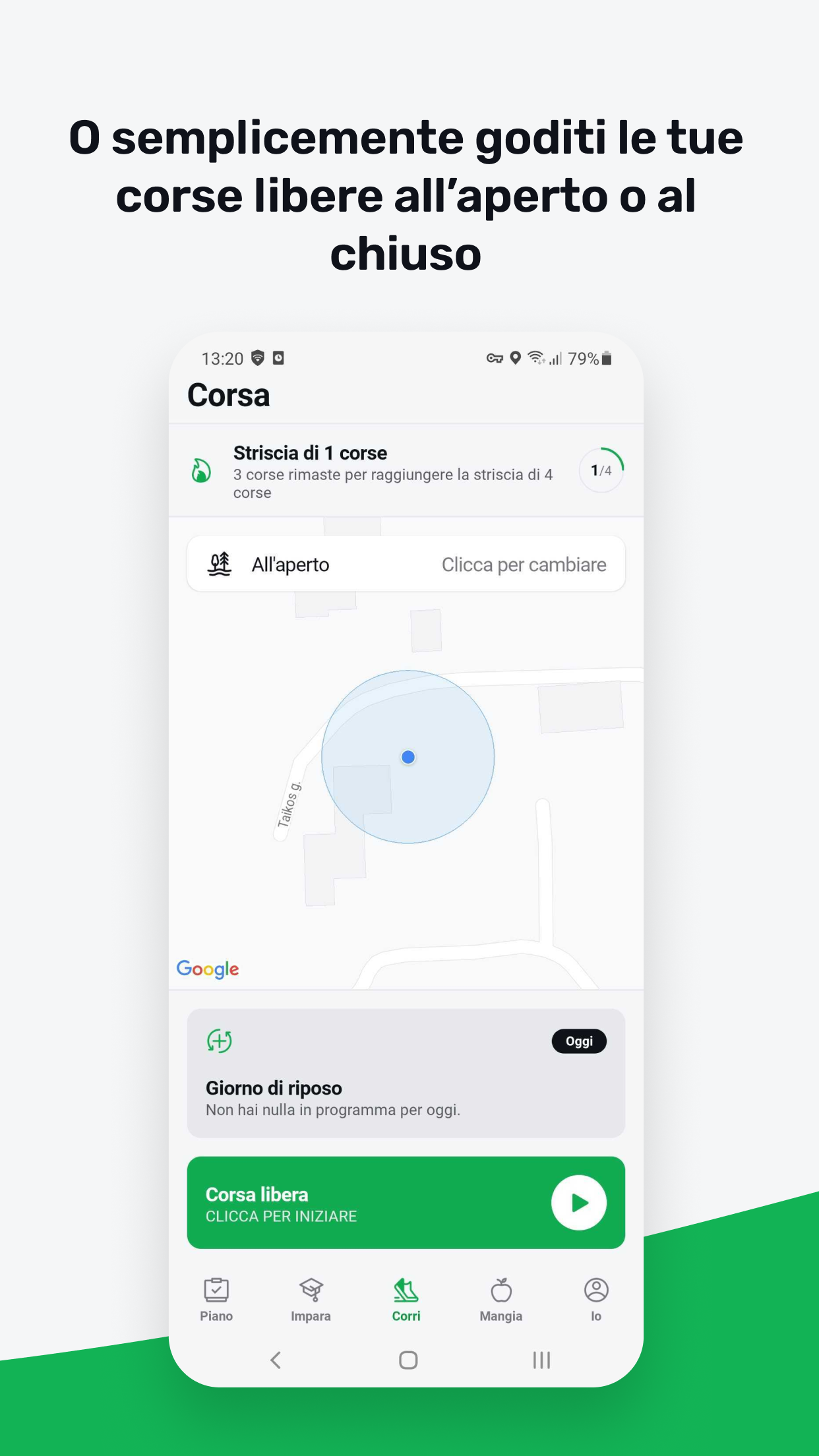 Joggo è un’app per la corsa studiata per supportare sia principianti che esperti nelle loro sessioni di allenamento, che siano all’aperto o sul tapis roulant. Grazie al programma personalizzato per la corsa, alla dieta su misura e al comodissimo tracker per la corsa, ti aiuterà a raggiungere i tuoi obiettivi di fitness e di perdita di peso adattandosi alle tue esigenze. Joggo può diventare il tuo assistente personale per la corsa, il tuo nutrizionista e il tuo gruppo di supporto, rimanendo sempre a disposizione nella tua tasca. Creato dai migliori coach ed elaborato su misura per te e per i tuoi obiettivi, è in grado di portare risultati duraturi. FUNZIONALITÀ DI JOGGO PROGRAMMA PERSONALIZZATO PER LA CORSA, PER PRINCIPIANTI ED ESPERTI Rispondi al test integrato nell’app e completa una prima breve corsa per valutare il tuo stato attuale: otterrai subito un piano di allenamento interamente personalizzato in base alle tue esigenze, ai tuoi obiettivi e al tuo stile di vita. Che tu corra per perdere peso, per allenarti in vista di una gara o per cercare di battere il tuo record personale, Joggo farà al caso tuo. MODALITÀ TAPIS ROULANT Se la corsa all’aperto non fa per te, o se semplicemente fuori è brutto tempo, puoi anche scegliere di allenarti comodamente da casa tua, quando vuoi tu. AGGIORNAMENTO BIMENSILE DEL PROGRAMMA IN BASE AI PROGRESSI DELL’UTENTE Proprio come farebbe un vero allenatore, Joggo valuterà i tuoi risultati ogni due settimane e adatterà l’intensità del programma in base ai tuoi progressi e alle tue impressioni personali. In questo modo puoi procedere verso i tuoi obiettivi ad un passo che sia adatto a te. MATERIALE EDUCATIVO E ASSISTENZA A TUTTO TONDO Joggo offre un’ampia libreria di articoli educativi e di preziosi consigli, creati appositamente per i clienti più esigenti, con argomenti che vanno dalla nutrizione alla prevenzione degli infortuni, passando per le tecniche di respirazione e molto altro. In questo modo avrai tutta l’assistenza che ti serve proprio quando ti serve. RICOMPENSE PER I TUOI SFORZI, PER TENERE ALTA LA MOTIVAZIONE Per ogni serie di allenamenti che completerai con successo, guadagnerai delle medaglie digitali che ti aiuteranno a rimanere costante, motivato/a e in linea con i tuoi obiettivi. PIANI ALIMENTARI PERSONALIZZATI IN BASE AI CIBI CHE AMI Ottieni un programma alimentare fatto su misura per te, sulla base dei tuoi cibi preferiti e delle tue esigenze nutrizionali. È la strategia migliore per raggiungere i tuoi obiettivi fisici e di salute, senza stravolgere i tuoi ritmi e senza rinunciare ai cibi che ami. PROMEMORIA PUNTUALI Puoi ricevere promemoria per le tue prossime corse e notifiche sull’arrivo di nuovi contenuti sull’app Joggo. In questo modo, potrai facilmente rimanere al passo con i tuoi obiettivi. STRUMENTI DI TRACCIAMENTO PER LA CORSA E PER LA PERDITA DI PESO La nostra app può monitorare con il GPS la velocità e la distanza percorsa. Inoltre, tiene traccia di tutte le tue attività, così puoi sempre tenere monitorati i tuoi progressi con la corsa. Gli strumenti dedicati alla perdita di peso tracciano il tuo percorso nel tempo e ti aiutano a tenere sotto controllo il peso per raggiungere rapidamente i tuoi obiettivi. Acquistabile a parte: SCHEDA DI ALLENAMENTO TOTAL-BODY: Richiedi un programma di allenamento completo per tutto il corpo, con video tutorial e istruzioni dettagliate per allenare gambe, tronco e braccia. Il programma è stato ideato dai nostri migliori specialisti dello sport. DISCLAIMER: Si prega gentilmente di consultare un medico in aggiunta all’utilizzo di questa app e prima di prendere qualsiasi decisione di carattere medico. Informativa sulla privacy: https://joggo.run/en/data-protection-policy/ Condizioni generali: https://joggo.run/en/general-conditions
