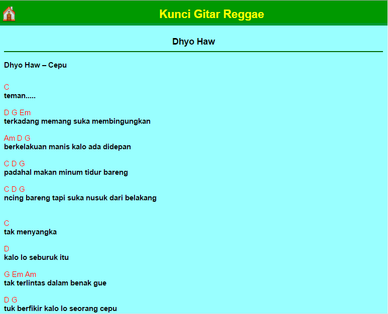 Kunci Gitar Reggae