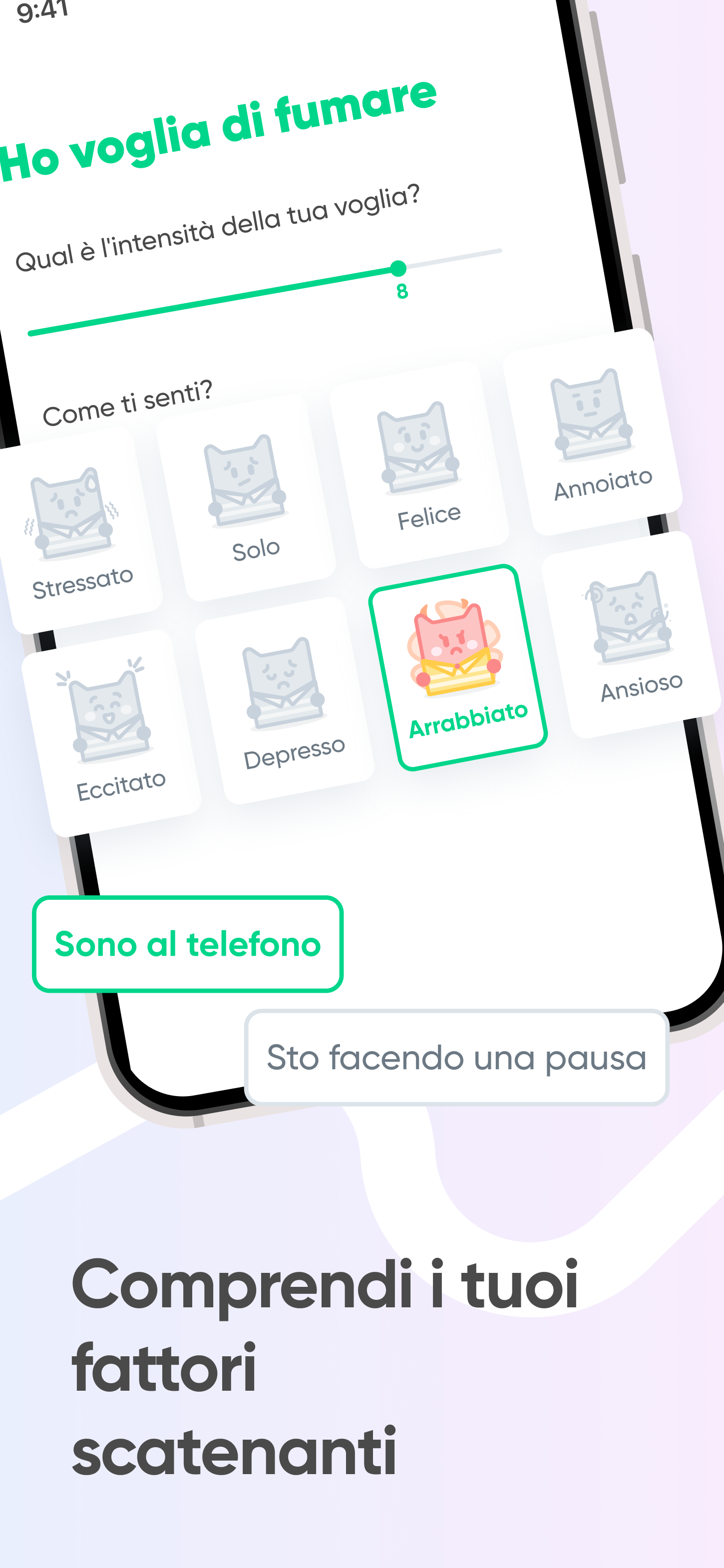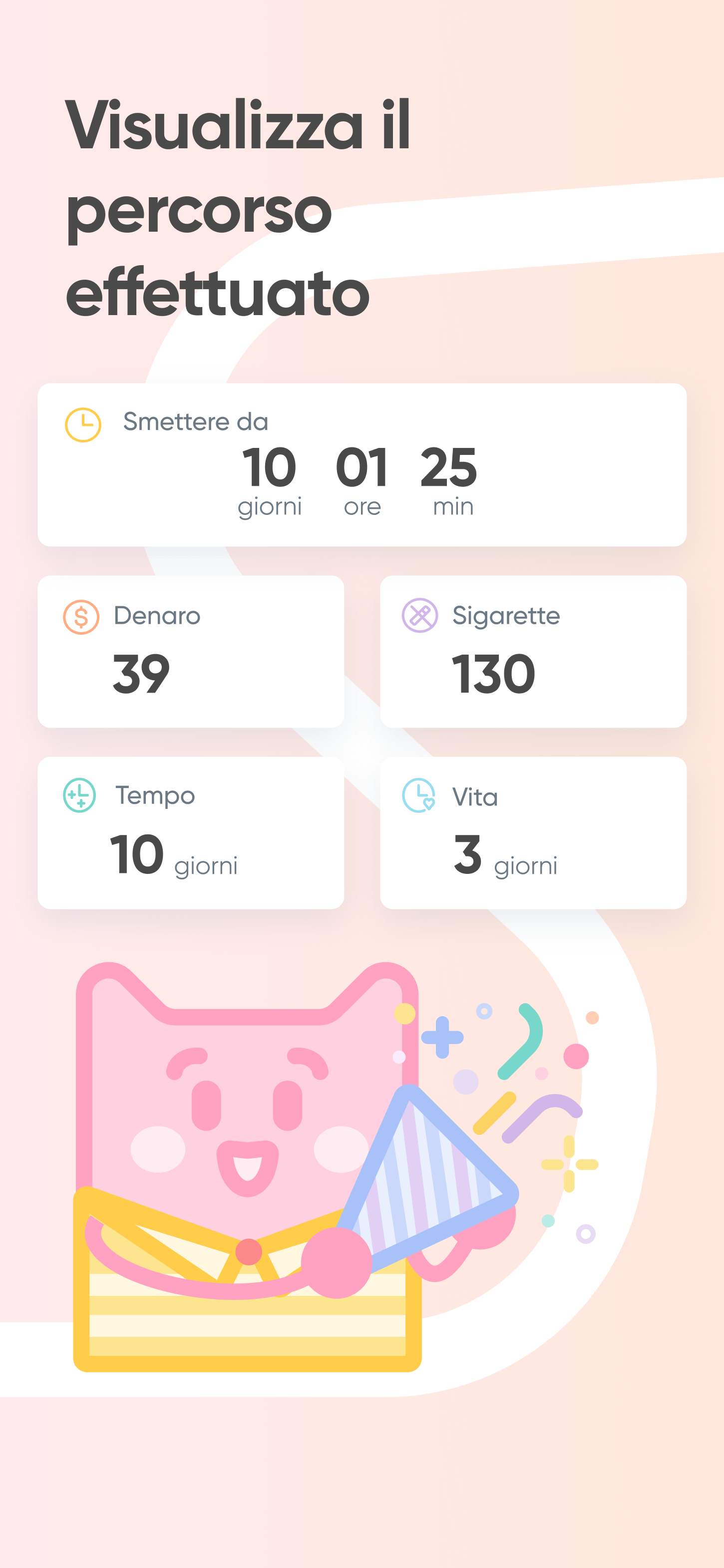 UN DIARIO PER SEGUIRE I TUOI PROGRESSI DOPO AVER SMESSO DI FUMAREDesideri fumare? Hai una ricaduta? Non ti preoccupare, non è la fine del mondo! Registra le sigarette che hai fumato per capire meglio la tua dipendenza e imparare a superarla. Con Kwit trovi il modo migliore per smettere di fumare, adatto a te, seguendo come il tuo desiderio di fumare si modifica nel tempo.