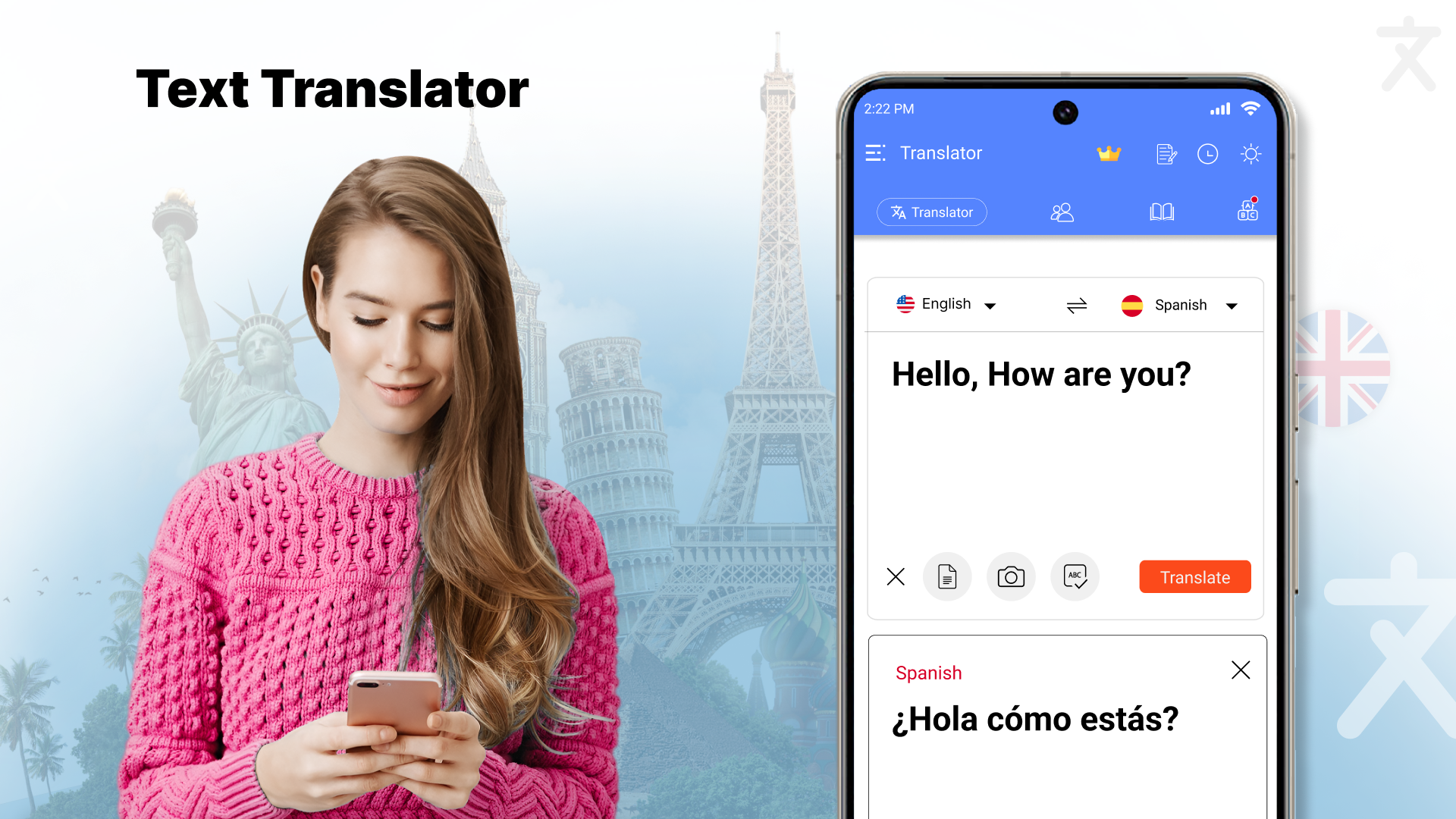 Language Translator Pro is Translate Text, Voice & Photos Instantly Language Translator Pro is your smart tool for instant translation. Whether you are traveling, learning a new language, chatting with friends, or working with international clients, this app helps you translate text, voice, and even photos in seconds. With Language Translator Pro, you don’t need to worry about language differences anymore. Just type, speak, or scan, and get accurate translations in over 100+ global languages. :- Key Features: ✔️ Text Translator – Translate words, sentences, or full paragraphs instantly. ✔️ Voice Translator – Speak and translate in real-time for smooth conversations. ✔️ Photo Translator – Take a picture of text, signboards, menus, or documents and translate instantly. ✔️ All Languages Supported – English, Spanish, French, Chinese, Arabic, Hindi, Russian, Japanese, Korean, German, Portuguese, Turkish, and many more. ✔️ Dictionary & Meanings – Learn word definitions, synonyms, and correct usage. ✔️ Fast & Accurate – AI-powered smart translation for better results. ✔️ Offline Mode – Save your favorite translations and use them anytime. ✔️ Simple & Easy UI – User-friendly design for quick access and smooth experience. :- Where to Use Language Translator Pro? 1-While traveling abroad , Read signs, menus, maps, and communicate with locals. 2-For education & learning, Improve your vocabulary and understand foreign books. 3-In business meetings, Communicate with international clients and partners easily. 4-For daily conversations, Chat with friends and family from different countries. 5-To translate documents & photos, Get instant results from camera or gallery. :- Why Choose Language Translator Pro? 1-Supports text, voice, and camera translation in one app. 2-Lightweight and super fast. 3-Designed for students, travelers, professionals, and language learners. 4-Regular updates for better accuracy and new features.