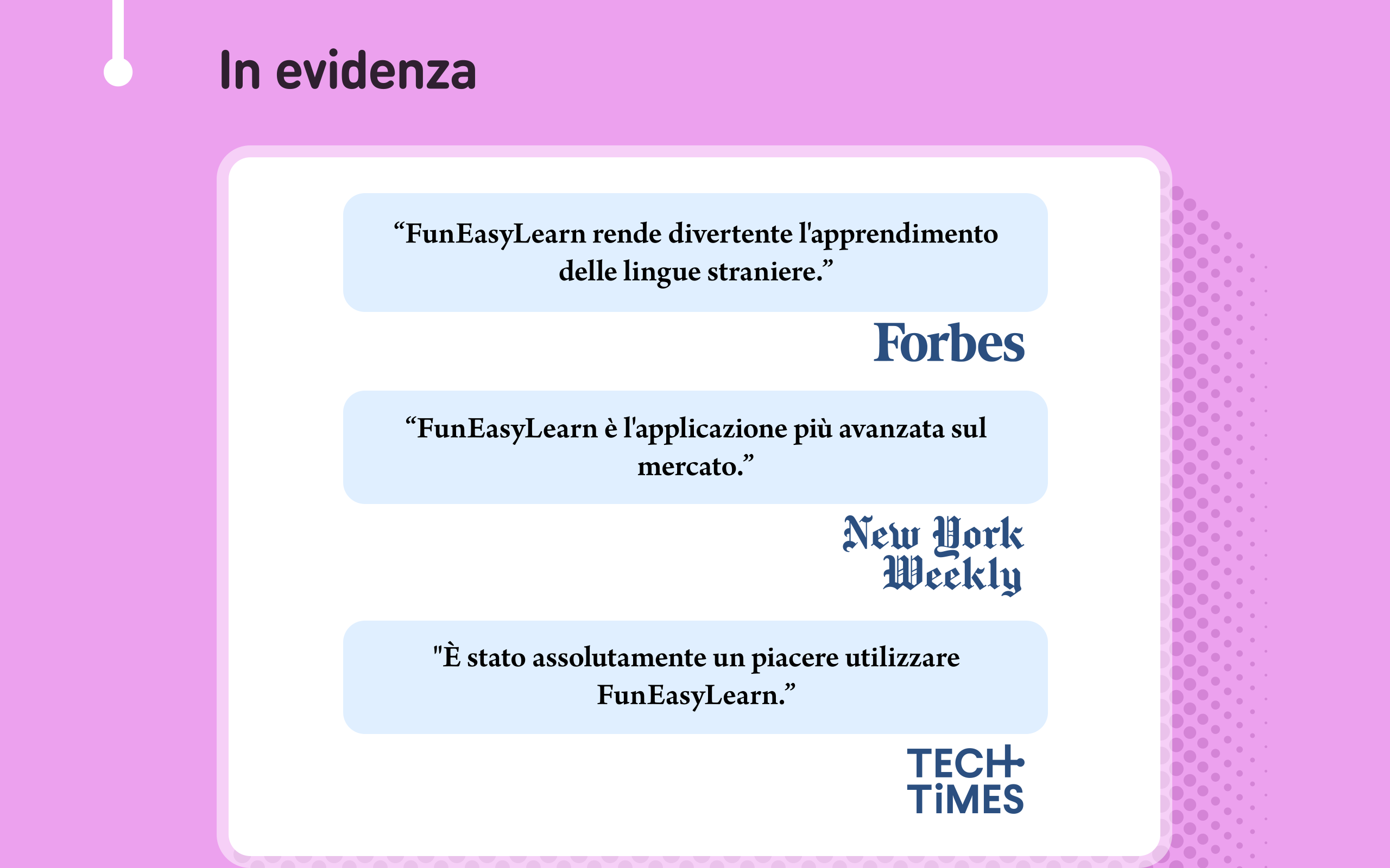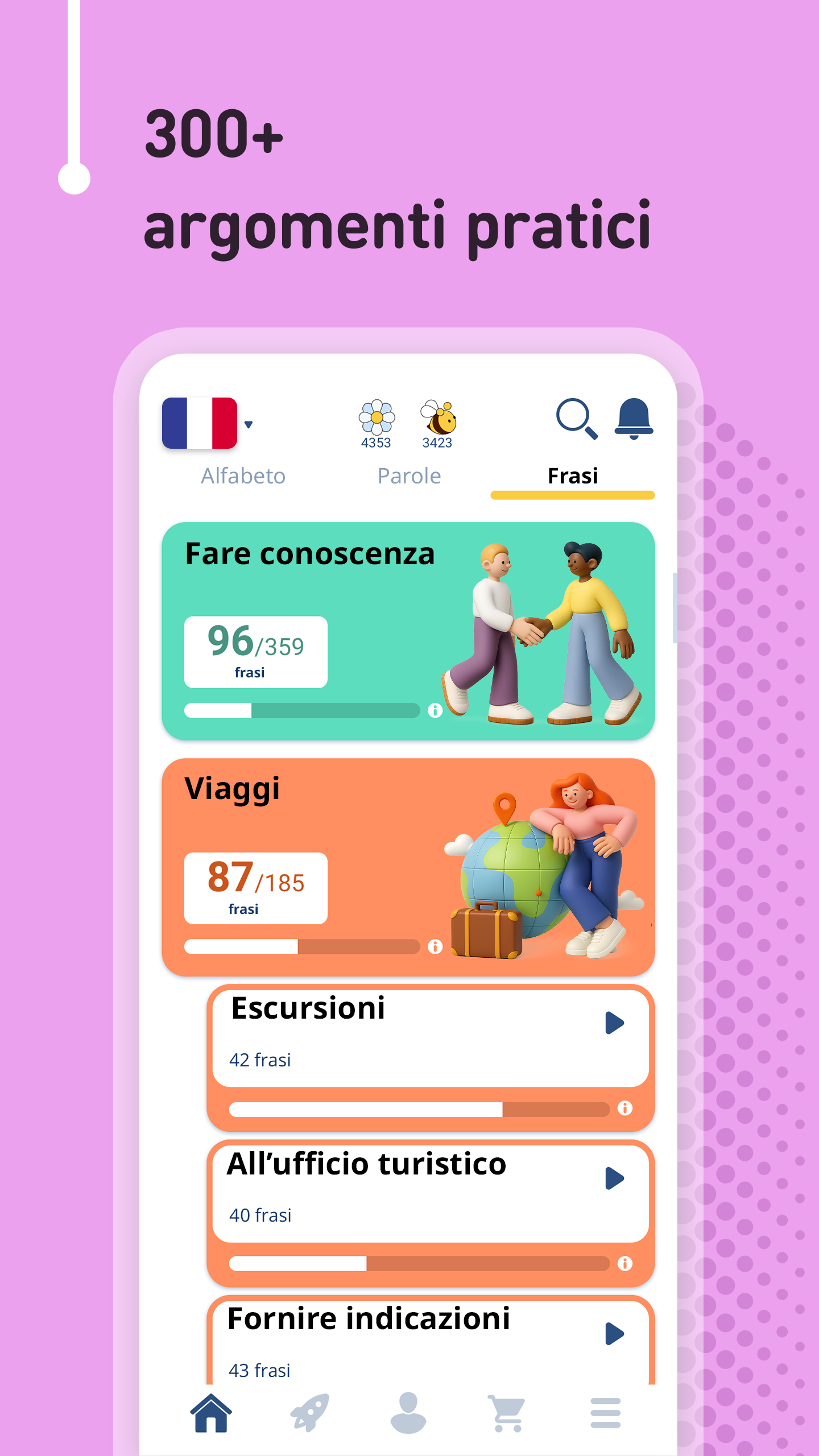 Impara il francese da 61 lingue native, gratis & offline, con FunEasyLearn. Impara a LEGGERE 📖 SCRIVERE✍ e PARLARE il francese 💬 Scopri il modo semplice & divertente per imparare tutte le regole di lettura, tutte le parole di cui avrai mai bisogno e tutte le frasi utili in lingua francese. 🚀 Contenuto • 6.000 parole francesi (in costante crescita): i nomi, i verbi, gli aggettivi, ecc. più comuni, classificati in 7 livelli e 200 argomenti; • 5.000 frasi francesi (usate frequentemente): le frasi più importanti per conversazioni e viaggi quotidiani, suddivise in 10 livelli e 120 argomenti. Espandi il tuo vocabolario imparando parole, frasi ed espressioni per studenti principianti, di livello intermedio e avanzato. 🔔 Perchè imparare il francese con FunEasyLearn? FunEasyLearn rivoluziona l'apprendimento delle lingue. Il nostro team di linguisti e insegnanti ha sviluppato una strategia unica di apprendimento delle lingue. Il segreto sta nel combinare un alfabeto con tutte le regole di lettura, tutte le parole necessarie e un pratico frasario in un'unica app. Ciò consente ai nostri utenti di leggere una parola o frase, pronunciarla correttamente, associarla a un'illustrazione e praticarla con giochi di ascolto, scrittura e conversazione. 🏆 Caratteristiche principali Illustrazioni disegnate a mano – memorizza il nuovo vocabolario più velocemente con illustrazioni intuitive; Registrazioni audio professionali – ascolta degli audio registrati da madrelingua; Statistiche dettagliate – analizza i tuoi risultati e traccia i tuoi progressi; Sistema di revisione – ripassa tutto ciò che impari; Ricerca complessa – trova rapidamente le parole e le frasi di cui hai bisogno; Nascondi ciò che sai Riconoscimento vocale – migliora la tua pronuncia; Offline – usa l'app in qualsiasi parte del mondo, senza connessione a Internet. 💼 Francese per lavoro Ottieni l'accesso a speciali lezioni di francese creati per il vostro business. Offriamo corsi specializzati per tassisti, personale di hotel & ristoranti, assistenti di volo, commessi, ecc. ✈ Francese per viaggiare Impara come prenotare una camera d'albergo, ordinare un pasto in un ristorante, chiedere indicazioni stradali, svolgere una conversazione e parlare in sicurezza con i madrelingua. 🙌 Francese per adulti Adattiamo i contenuti in base all'età dello studente. Sia tu che tuo figlio potete imparare il francese e divertirvi. Abbonamento Gratuito a FunEasyLearn Iscriviti GRATIS, con i fiori che guadagni giocando ai giochi di apprendimento delle lingue. Impara il francese, gioca gratis! È veloce & facile. 📴 📥 Scarica subito il corso di francese FunEasyLearn! Raccomanda l'app ai tuoi amici e ottieni una ricompensa! Valutaci e scrivi una recensione ⭐⭐⭐⭐⭐ Significherebbe molto per il nostro team! Contattaci: https://www.FunEasyLearn.com/