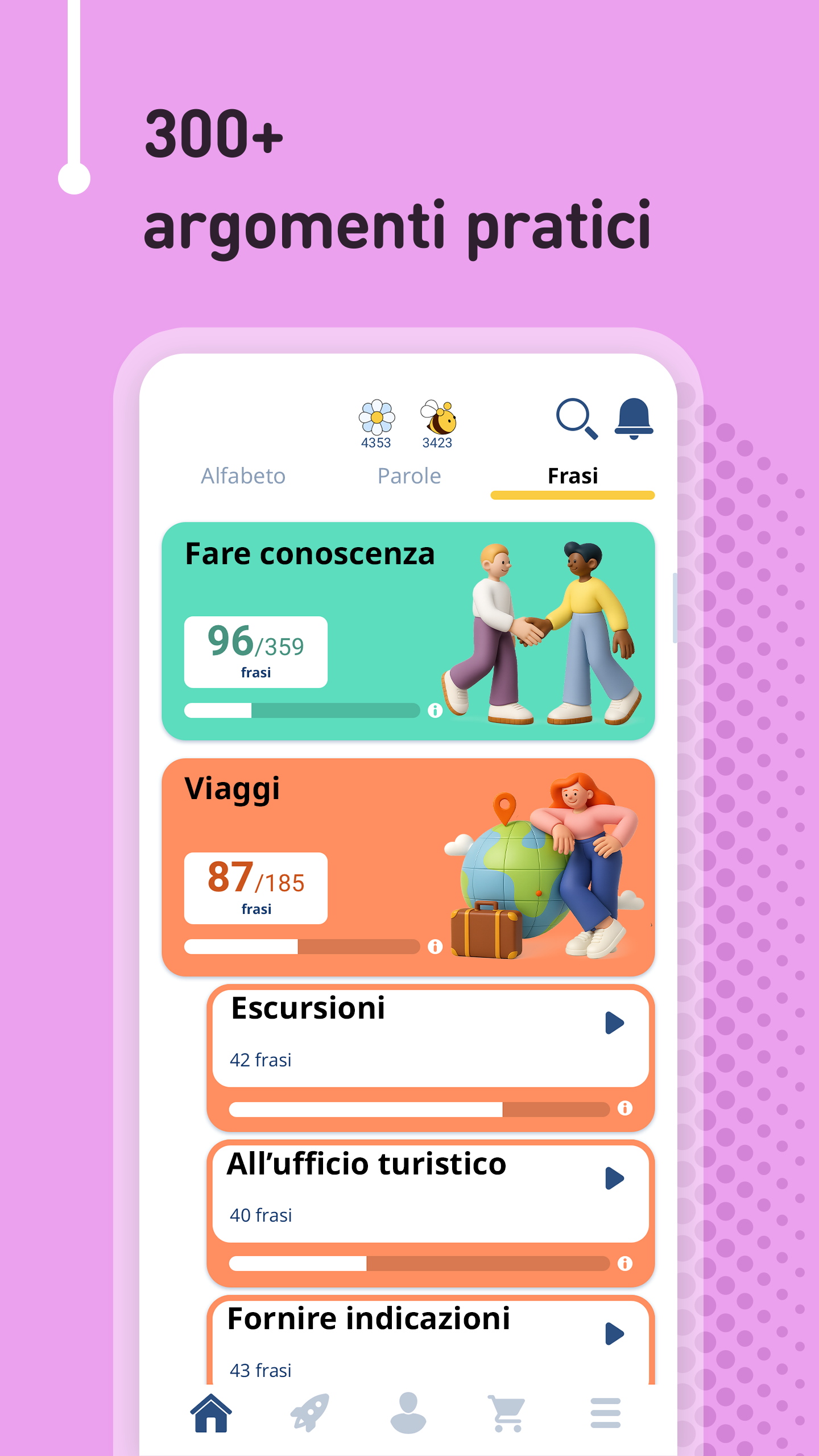 🈚 5.000 FRASI (frequentemente utilizzate): classificate in 20 argomenti e 120 sotto-argomenti che coprono qualsiasi aspetto della vita quotidiana o situazione di viaggio.