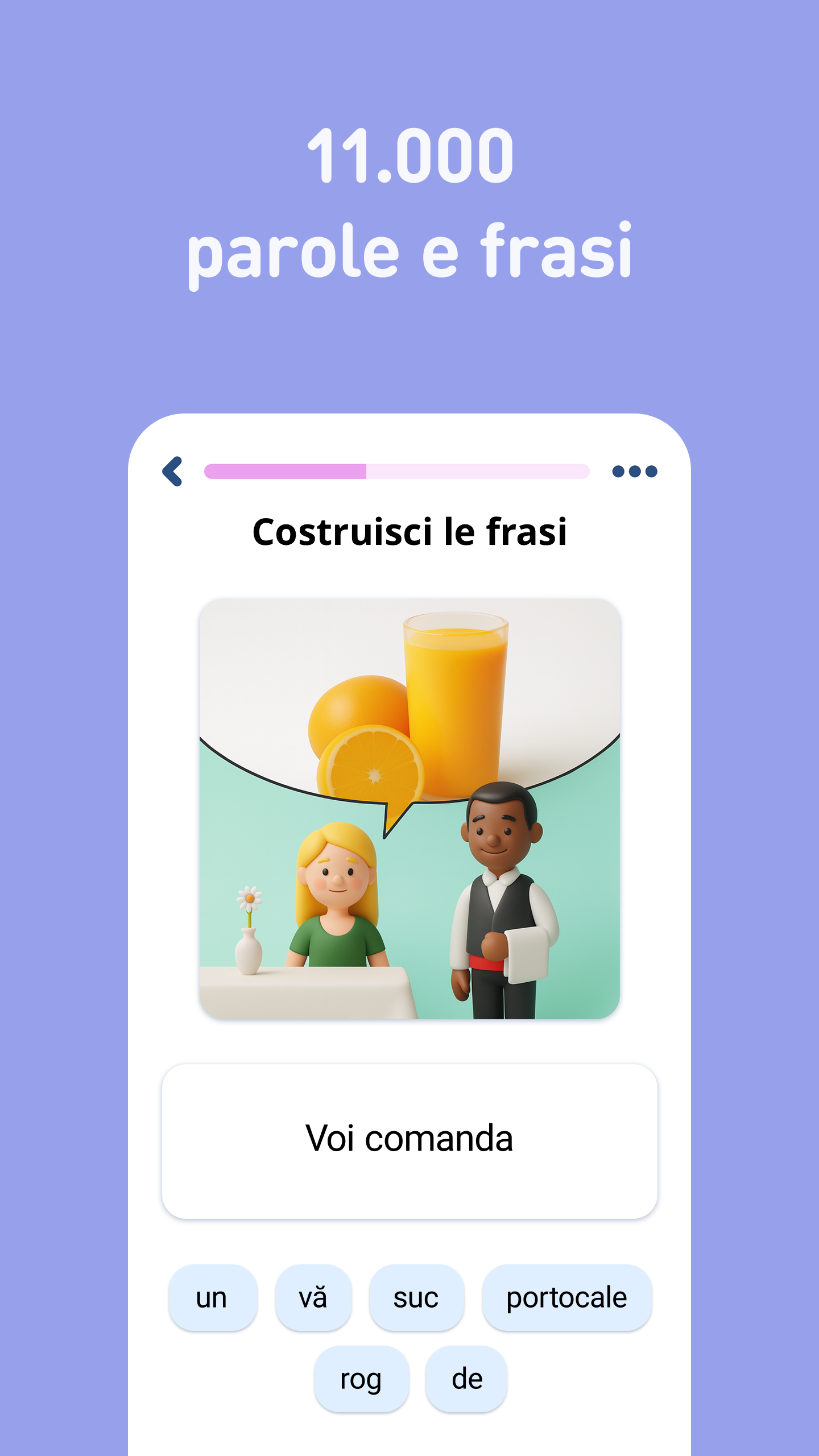 Impara il rumeno da 61 lingue native, gratis & offline, con FunEasyLearn. Impara a LEGGERE 📖 SCRIVERE✍ e PARLARE il rumeno 💬 Scopri il modo semplice & divertente per imparare tutte le regole di lettura, tutte le parole di cui avrai mai bisogno e tutte le frasi utili in lingua rumeno. 🚀 Contenuto • 6.000 parole romeni (in costante crescita): i nomi, i verbi, gli aggettivi, ecc. più comuni, classificati in 7 livelli e 200 argomenti; • 5.000 frasi romeni (usate frequentemente): le frasi più importanti per conversazioni e viaggi quotidiani, suddivise in 10 livelli e 120 argomenti. Espandi il tuo vocabolario imparando parole, frasi ed espressioni per studenti principianti, di livello intermedio e avanzato. 🔔 Perchè imparare il rumeno con FunEasyLearn? FunEasyLearn rivoluziona l'apprendimento delle lingue. Il nostro team di linguisti e insegnanti ha sviluppato una strategia unica di apprendimento delle lingue. Il segreto sta nel combinare un alfabeto con tutte le regole di lettura, tutte le parole necessarie e un pratico frasario in un'unica app. Ciò consente ai nostri utenti di leggere una parola o frase, pronunciarla correttamente, associarla a un'illustrazione e praticarla con giochi di ascolto, scrittura e conversazione. 🏆 Caratteristiche principali Illustrazioni disegnate a mano – memorizza il nuovo vocabolario più velocemente con illustrazioni intuitive; Registrazioni audio professionali – ascolta degli audio registrati da madrelingua; Statistiche dettagliate – analizza i tuoi risultati e traccia i tuoi progressi; Sistema di revisione – ripassa tutto ciò che impari; Ricerca complessa – trova rapidamente le parole e le frasi di cui hai bisogno; Nascondi ciò che sai Riconoscimento vocale – migliora la tua pronuncia; Offline – usa l'app in qualsiasi parte del mondo, senza connessione a Internet. 💼 Rumeno per lavoro Ottieni l'accesso a speciali lezioni di romeno creati per il vostro business. Offriamo corsi specializzati per tassisti, personale di hotel & ristoranti, assistenti di volo, commessi, ecc. ✈ Rumeno per viaggiare Impara come prenotare una camera d'albergo, ordinare un pasto in un ristorante, chiedere indicazioni stradali, svolgere una conversazione e parlare in sicurezza con i madrelingua. 🙌 Rumeno per adulti Adattiamo i contenuti in base all'età dello studente. Sia tu che tuo figlio potete imparare il rumeno e divertirvi. Abbonamento Gratuito a FunEasyLearn Iscriviti GRATIS, con i fiori che guadagni giocando ai giochi di apprendimento delle lingue. Impara il rumeno, gioca gratis! È veloce & facile. 📴 📥 Scarica subito il corso di rumeno FunEasyLearn! Raccomanda l'app ai tuoi amici e ottieni una ricompensa! Valutaci e scrivi una recensione ⭐⭐⭐⭐⭐ Significherebbe molto per il nostro team! Contattaci: https://www.FunEasyLearn.com/
